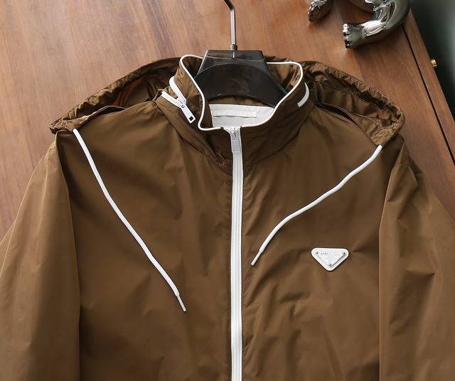 High-end version is hard to find in the counter! Prada 2025Ss latest spring Prada hooded casual jacket Spring jacket high-end quality, high-end production technology, the version fabric hardware are all 1:1 customized in the counter, breathable and comfortable synthetic fabrics, the Logo adopts the popular embroidery design, the upper body is handsome and stylish, not restrained at all, and the upper body is super comfortable! The whole piece is super cool and high-end! The upper body is not heavy, showing a fashionable and individual atmosphere!