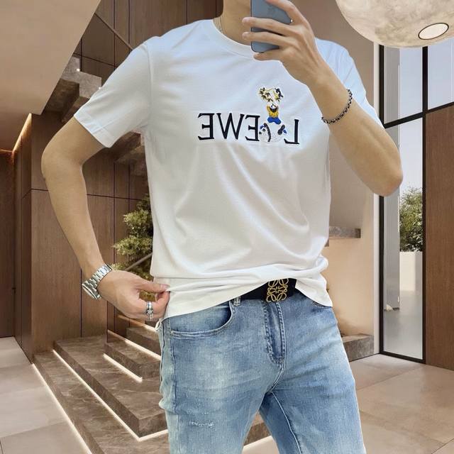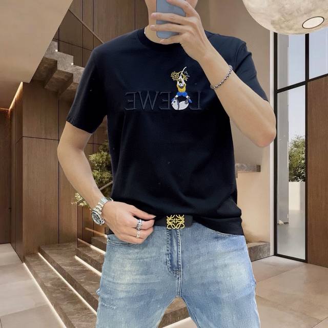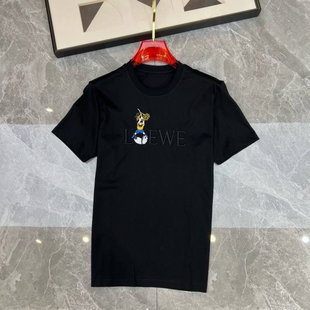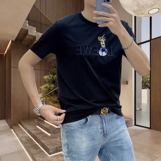Loewe 2025 early spring new models first release in the counter, the latest double mercerized round neck short-sleeved T-shirt with brand logo on the chest, heavy-duty design, high-end custom design, avant-garde design! Heavy-duty design, custom fabrics. Soft to the touch. Comfortable to wear. Counter-level exquisite sewing. Fine workmanship. The upper body effect is invincible and handsome! A must-have item for men! Size: M-4Xl 178 140 catties wear L Maximum wear 200 catties