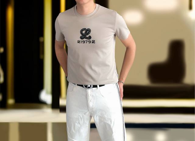 Loewe 2025 Spring European counter new top original fashion casual short-sleeved T-shirt. Customized by fashion influencers, selected imported high-density double-sided mercerized cotton fabric, exquisite logo, comfortable and breathable, soft and wrinkle-resistant, elastic and drapey, whether worn alone or as an inner layer, it is handsome, consistent with men's practical dressing habits, pursuing luxury, noble and elegant style, creating extraordinary men's taste, especially the first choice for urban fashion men.