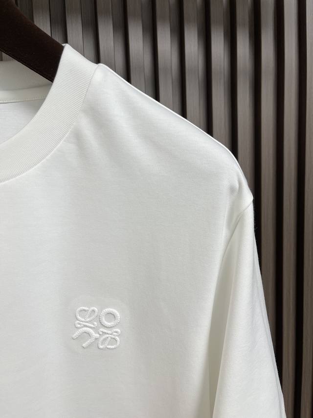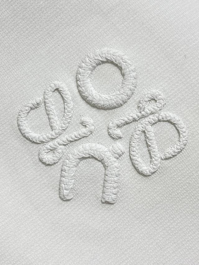 Loewe x On collaboration embroidered short-sleeved T-shirt is made from 24S special compact cotton (185g) paired with 32S 1x1 thread (220g). Utilizing a three-dimensional embroidery technique, the logo is clearly visible, with perfectly spaced curves. Crafted with lustrous mercerized thread, the embroidery is combined with intricate machine stitching and meticulous detailing to create a three-dimensional relief effect. The classic trademark lettering is embroidered with meticulously detailed stitching, resulting in crisp, linear, and three-dimensional text. The overall stitching is straight and delicate, the fabric is comfortable and soft, and the color is consistent, ensuring seamless color variation. It can be paired with similar items for a stylish look, perfect for any occasion. Customizable accessories are available, along with the full three-label design, and it's available for both men and women. Sizes: M-5Xl