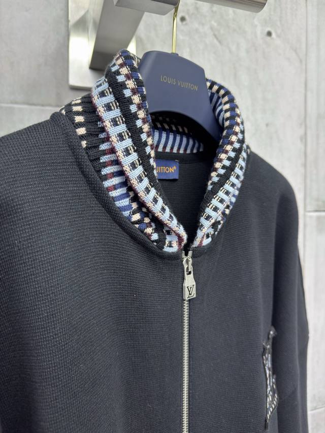Louis Vuitton Check Collar Patch Knit Jacket. Craftsmanship: Made from custom kn