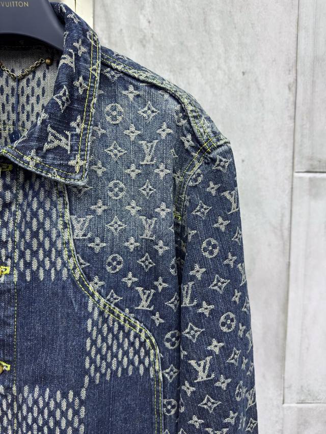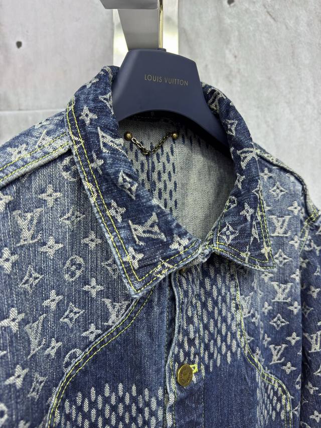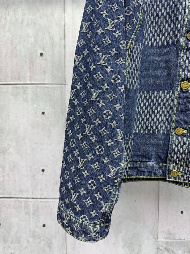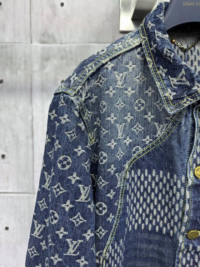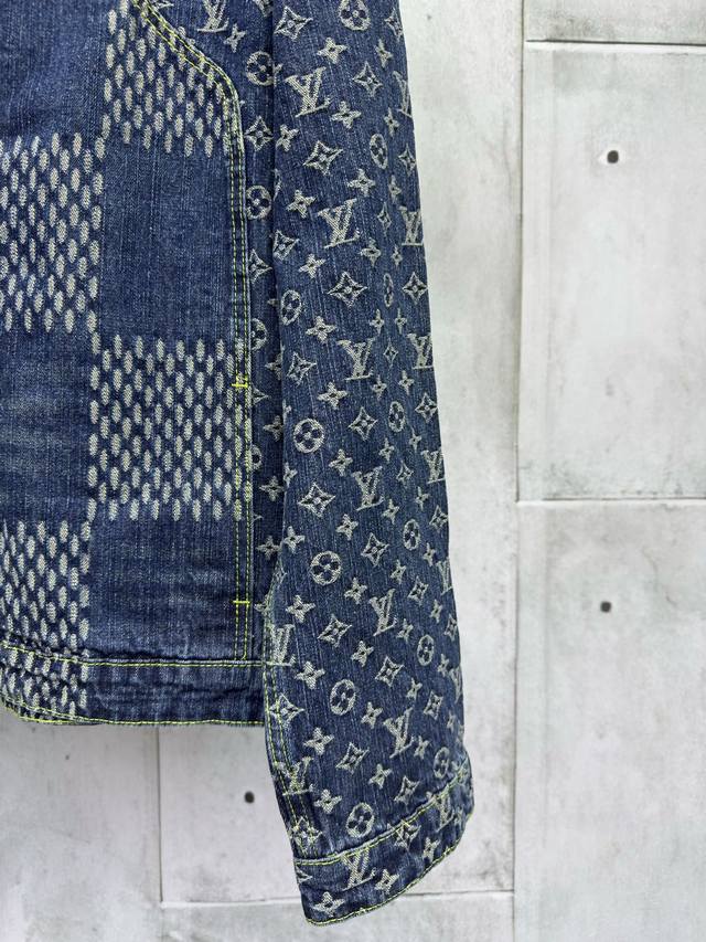 Louis Vuitton checkerboard jacquard denim jacket is expertly crafted from custom denim fabric. The fabric is comfortable, soft, breathable, and washed and distressed. The jacquard pattern is manually cut and positioned, resulting in significant wear. The cuffs are aligned, and the horizontal jacquard pattern on the back is laid out in a straight line. The front and back panels are stitched together to perfectly restore the original effect. The jacquard pattern is the same size and spacing, and the pattern width is consistent. The workmanship is very complex, and the hardware is all custom molded and distressed. It can be paired with various types of clothing to create a fashionable look. Custom accessories are provided, and the three labels are complete. It is the same style for both men and women! Sizes: 46-48-50-52 Color: Blue