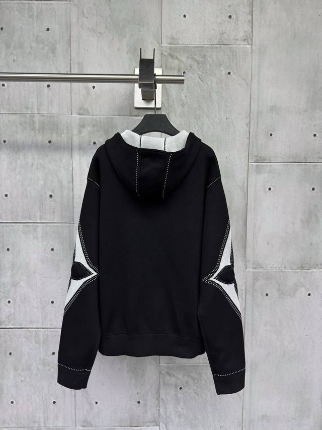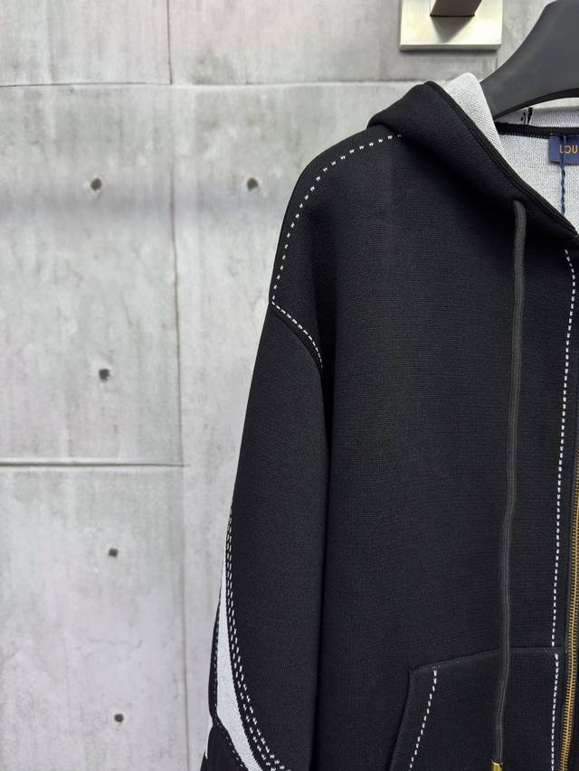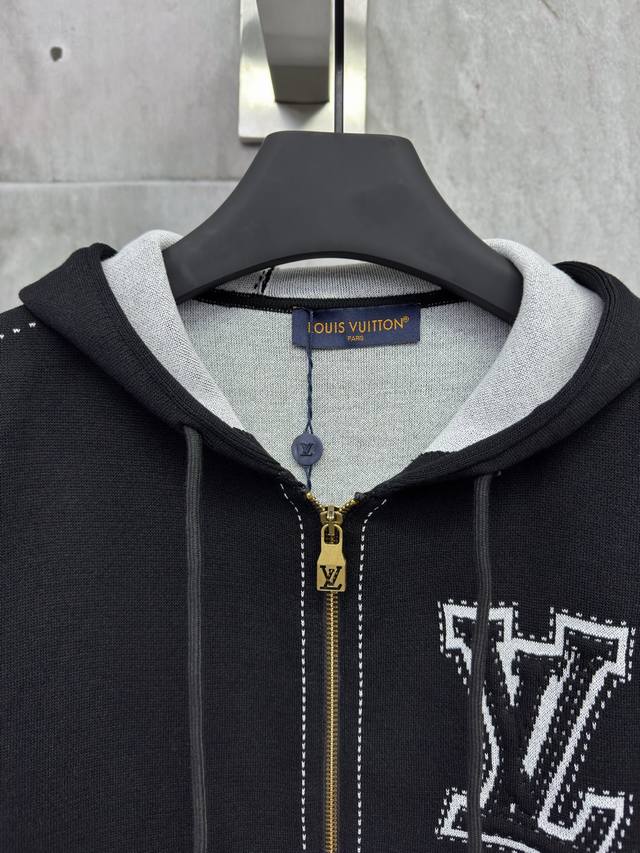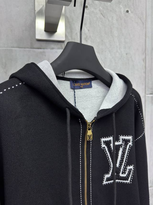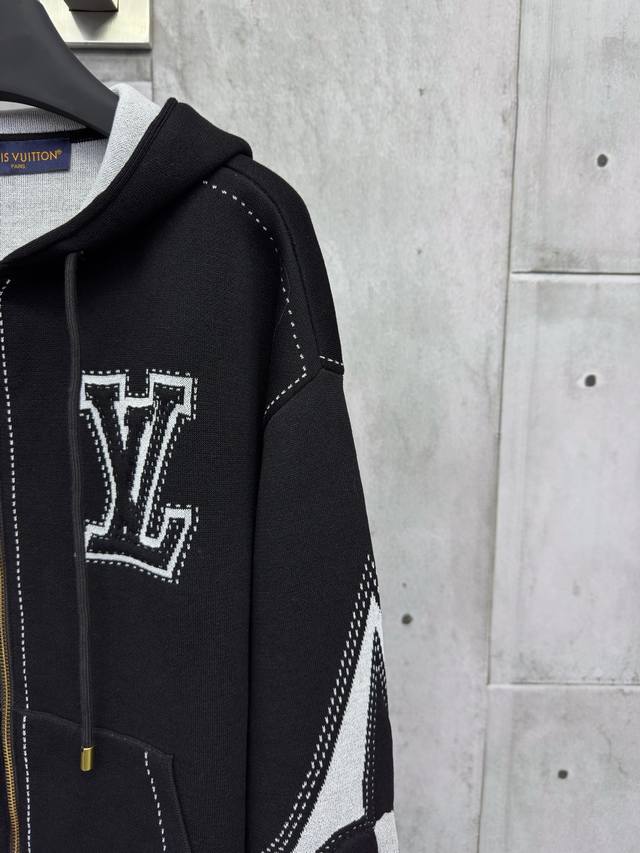 Louis Vuitton Four-Leaf Clover Zipper Jacket Process Description: The fabric is made of 60s double-combed siro-spun yarn, twisted into a single strand from three yarns, and custom-dyed in a beige grey. It is knitted using imported 1/4 knitting machines. Multiple local jacquard patterns and a complex double-sided interlaced filling process create a convex feel and increase thickness. A fine 16-needle seam disc and flat sewing process are used. This piece is unisex and comes in a soft wash. Sizes: SML-XL Color: Black