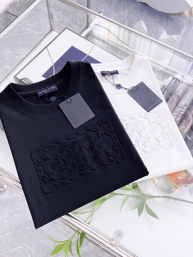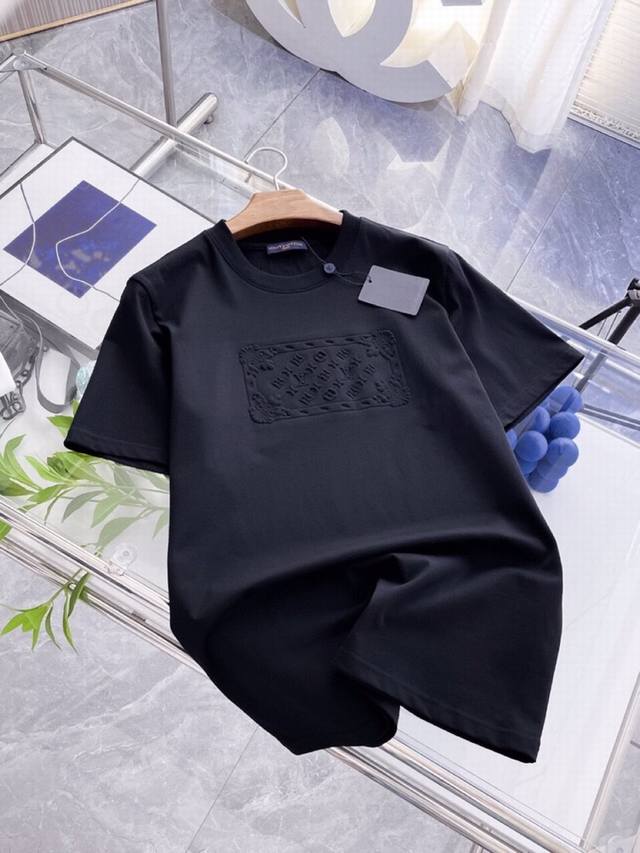 Louis Vuitton Lv summer new short-sleeved round neck T-shirt, new concave and convex technology, high-end fabrics, silky and fashionable, classic round neck short-sleeved fashion single product design, more fashionable and comfortable, high standard customization, very stylish upper body, customer-supplied accessories, customer-supplied imported high-end fabrics, very delicate texture, exquisite details and craftsmanship, a highly plastic single product, can be matched with any fashion, super good version, a must-have item for trendy men