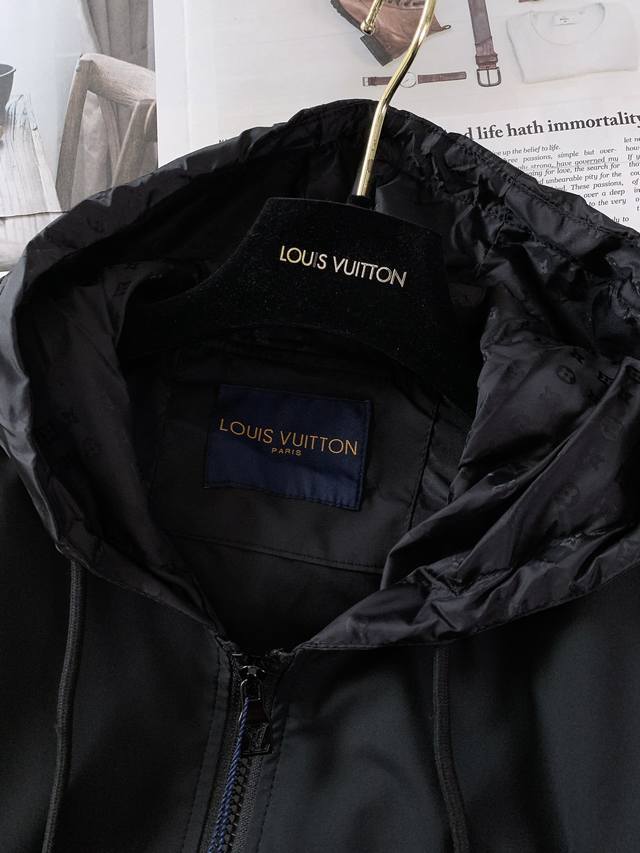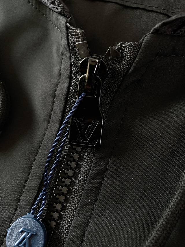 Hooded patchwork jacket, made of imported technology fabrics, Monogram brand element pattern on sleeves, loose version. Customer-supplied hardware accessories decoration, Behringer embroidered logo on chest, the same color as the body, no color difference, expensive labor. The lining is silk jacquard surface fabric, classic full-width logo jacquard craftsmanship, the craftsmanship cost is extremely high. The upper body effect is superb