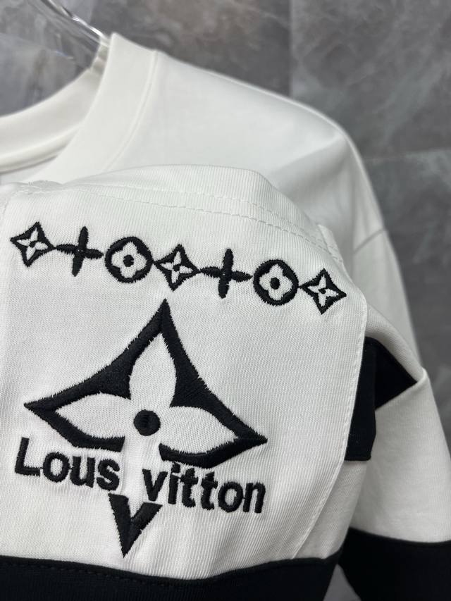 Lv Louis Vuitton 2025Ss round neck short-sleeved shorts suit. The pure cotton fa
