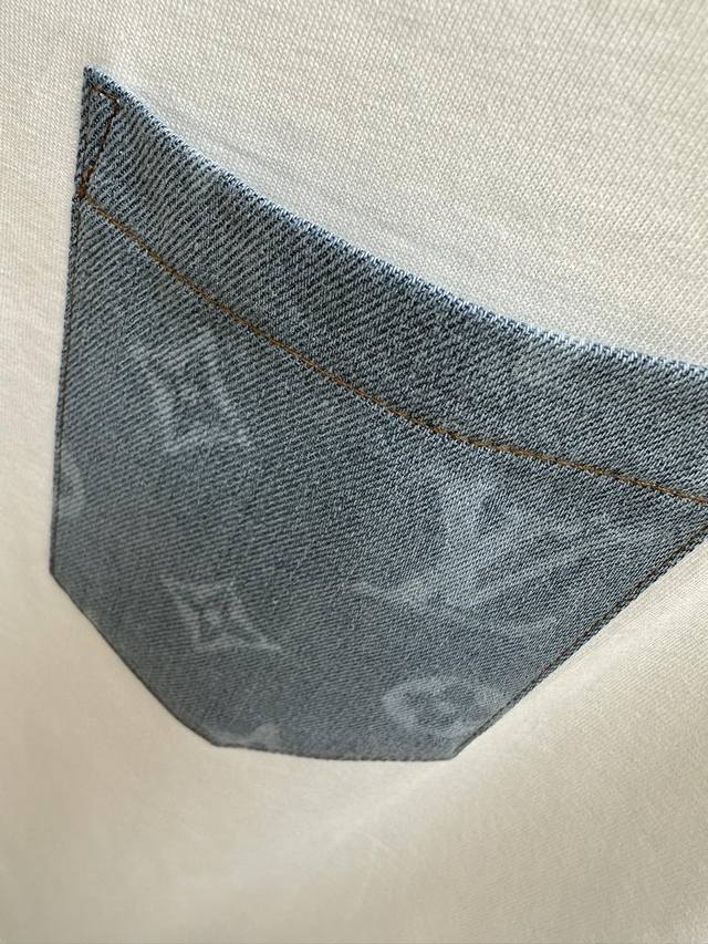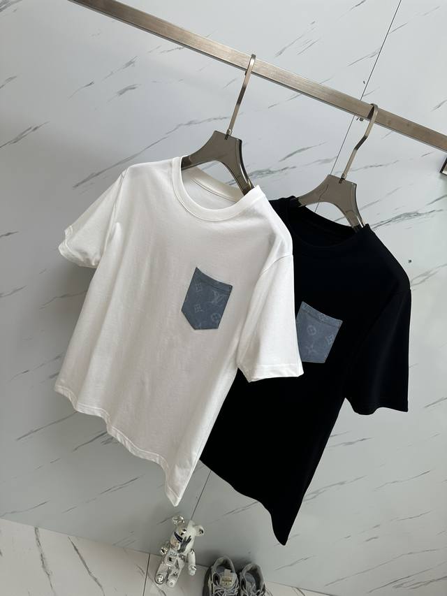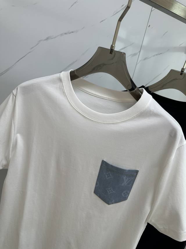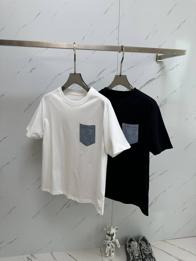 Minimum order of 3, mix and match. Special offer non-refundable. White. Sizes: 2X1. Louis 25 Ss counter-matched round-neck short-sleeved T-shirt. Couples' style. Monogram Lv patchwork leather pocket design. Custom cotton fabric. The thicker fabric accentuates the overall breathability and softness, while the rich cotton texture creates an extremely comfortable feel. A must-have for high-end professionals. Unisex style. Colors: Black and White. Sizes: S-2X1.