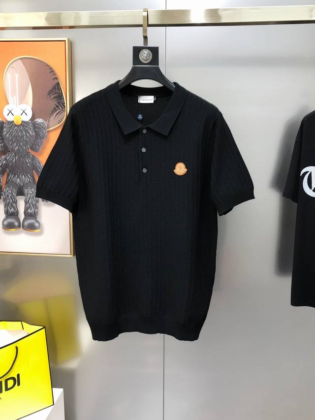 Moncler 2025 spring and summer new men's original lapel short-sleeved knitted wo