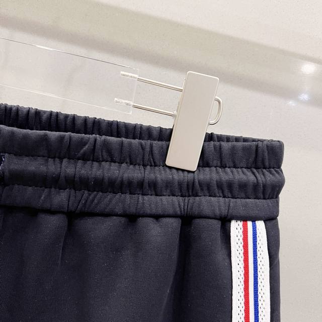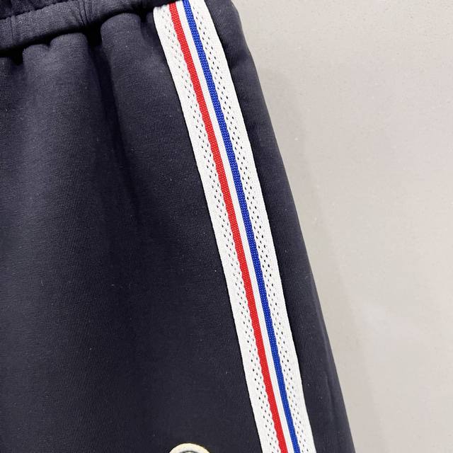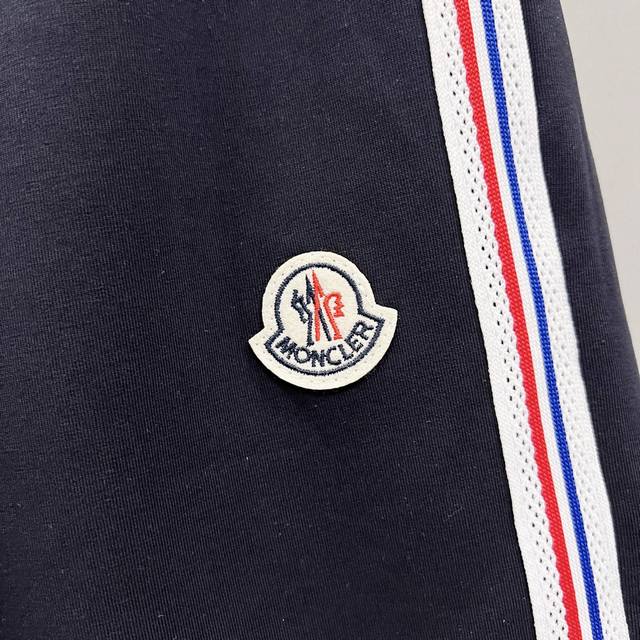 Moncler custom-made space cotton shorts with red, white, and blue webbing. Officially designed with the brand's official logo. High-quality, stylish, and versatile. Made of authentic, original fabric. Washed wheat with a hangtag and collar. Available in black, apricot, and royal blue. Sizes: XS-L