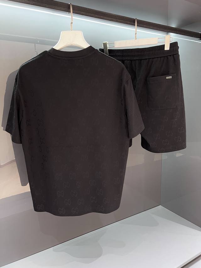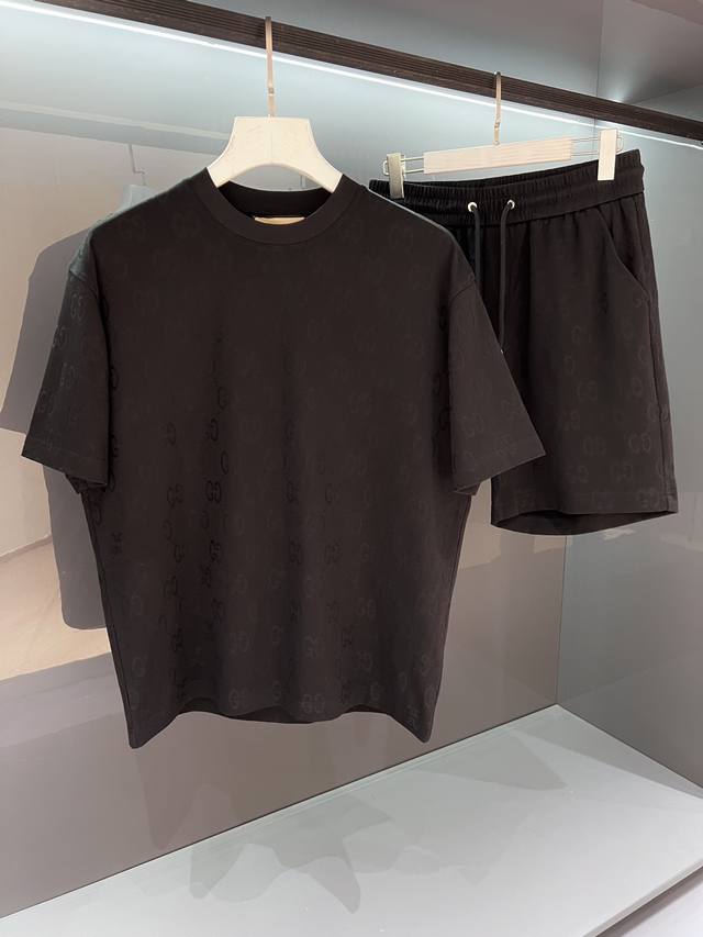 New jacquard Gu suit 2025Ss men's short-sleeved shorts sports suit simple and fa