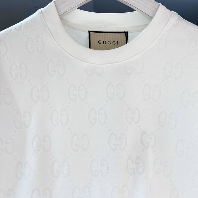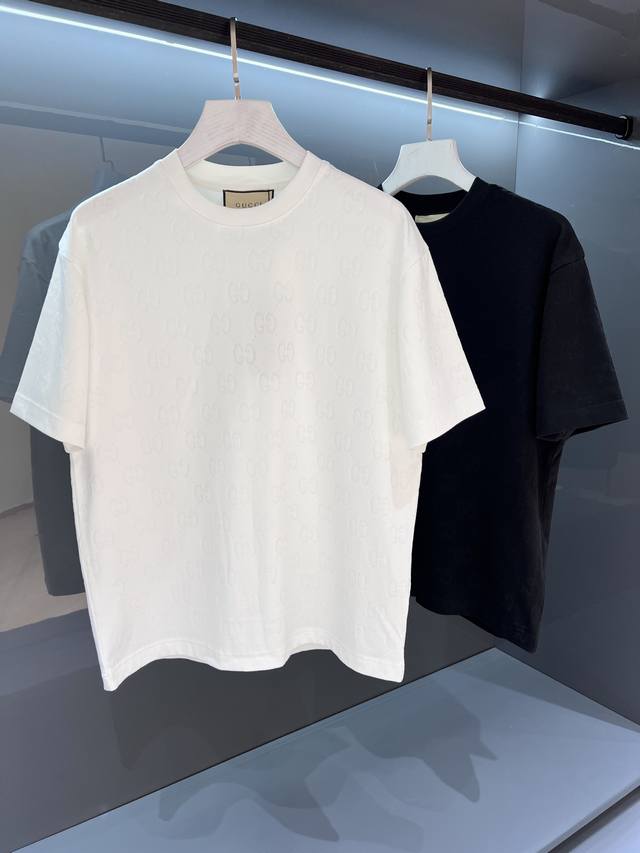 2025Ss Gu ribbon decoration logo design men's round neck short-sleeved T-shirt regular straight cut design, both personalized fashion style, born extraordinary. The evergreen style of the counter is simple but not simple.
