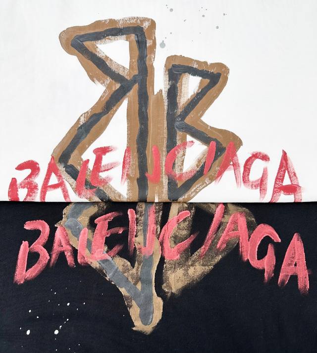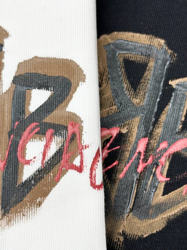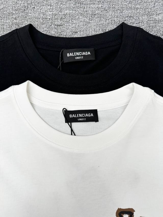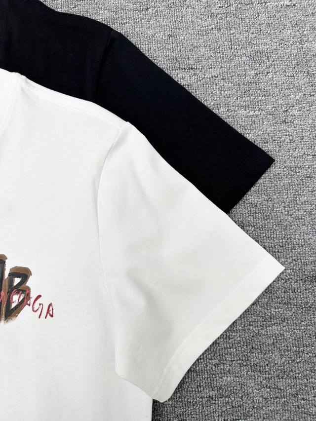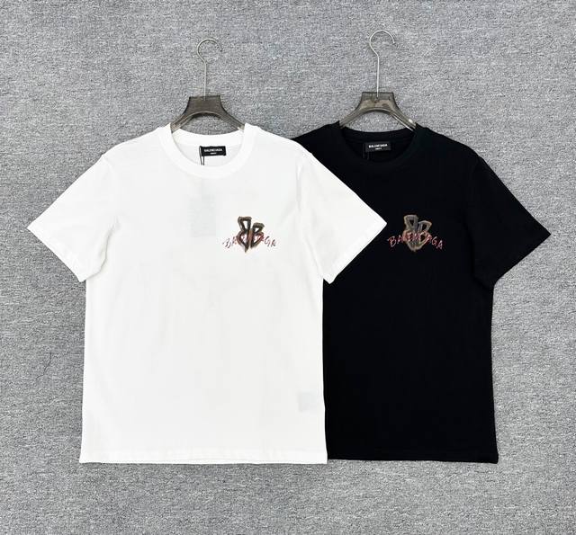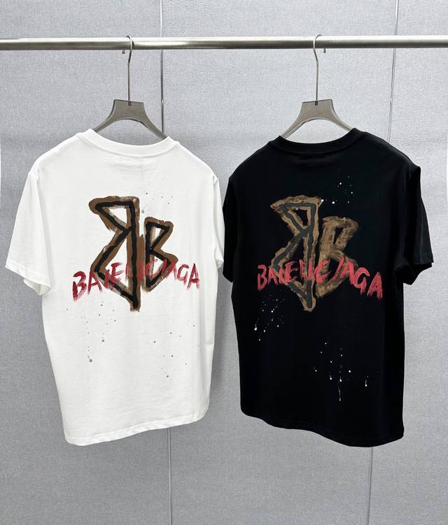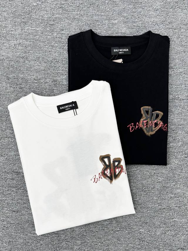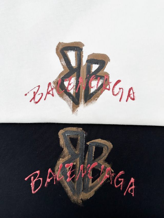New product from Hong Kong Foreign Company. 2025 summer new Bal*Nci*Ga brand new retro hand-painted Bb printed logo silhouette printed men's short-sleeved T-shirt. Os cutting design creates a unique styling charm. The silhouette is unique. Retro plain knitted cotton fabric, retro organic weaving process makes the fabric texture as soft, tight and comfortable as cotton wool. The hand feel is delicate and smooth, similar to the texture of washing. The logo printing design uses imported glue material and high-temperature machinery to press, and the natural fading process shows the charm of retro art. The neutral tailoring design highlights the individual and alternative fashion, with a fineness of up to 100%