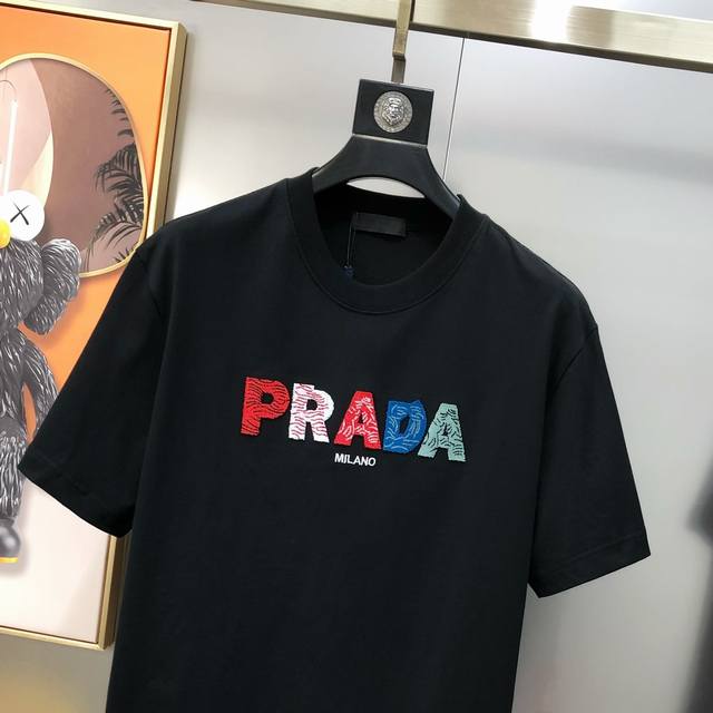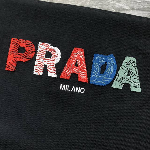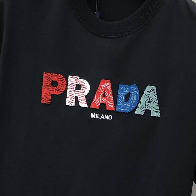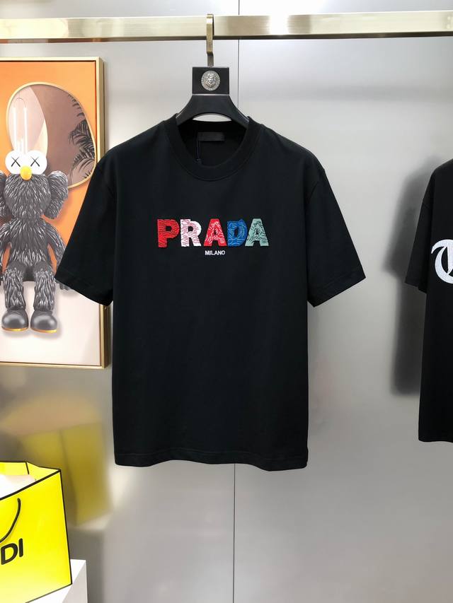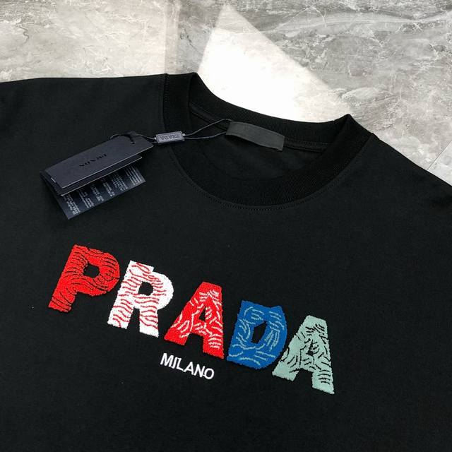 P*Ada Prada 2025 spring and summer new original men's round neck short-sleeved T-shirt counter simultaneous sale hot-selling high-end quality high version Os version wide version toothbrush three-dimensional embroidered letter Logo design customized imported double-strand 100% cotton fabric feels soft and delicate to wear skin-friendly and comfortable OEM factory P fine workmanship very handsome and stylish three-standard complete size: Xs-Xl slightly larger maximum size can wear about 200 pounds please report height and weight when placing an order black and white shipped the next day