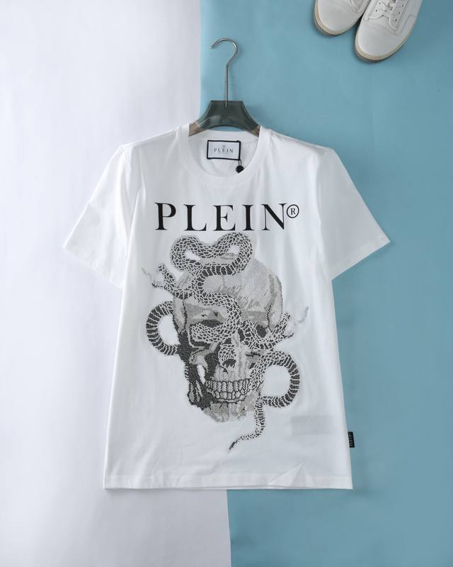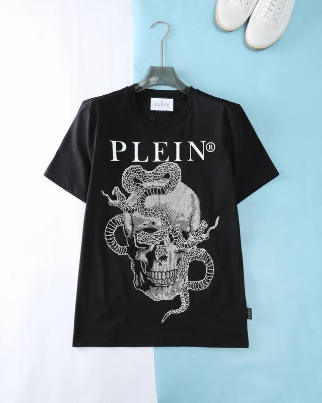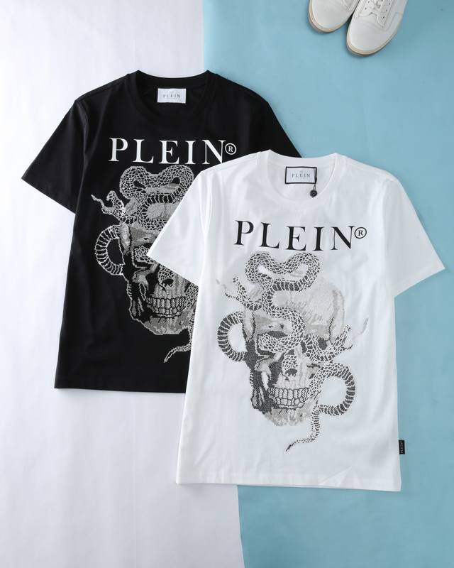 Pp Philip*Pu*in 25Ss new spring and summer limited edition of the Year of the Snake, men's classic skull logo hot diamond fashion round neck short-sleeved T-shirt! The trading company channel is rare, and it is sold simultaneously on Gw! The high street street style short-sleeved shirt is here, the handsome hot brick skull is super cool design, very trendy, the style and style are loved by more trend players, and they show their unique side through the wear of trendy clothing.