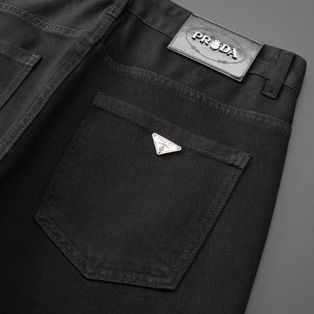 Prad 25Ss new spring/summer men's slim straight jeans. These early spring models are ultra-soft, made of stretch fabric and intricately crafted. A few extra seconds in any wash cycle will create a completely different color, making them even more valuable and exceptionally durable and odor-resistant. Made with premium denim stretch texture, genuine leather patches, and custom-made metal trims, these jeans create a unique and original silhouette! Original hardware and trims create a superb fit, comfortable and breathable, and of the highest quality. XD counter quality, they look incredibly stylish. Sizes: 28-38, 35, 37