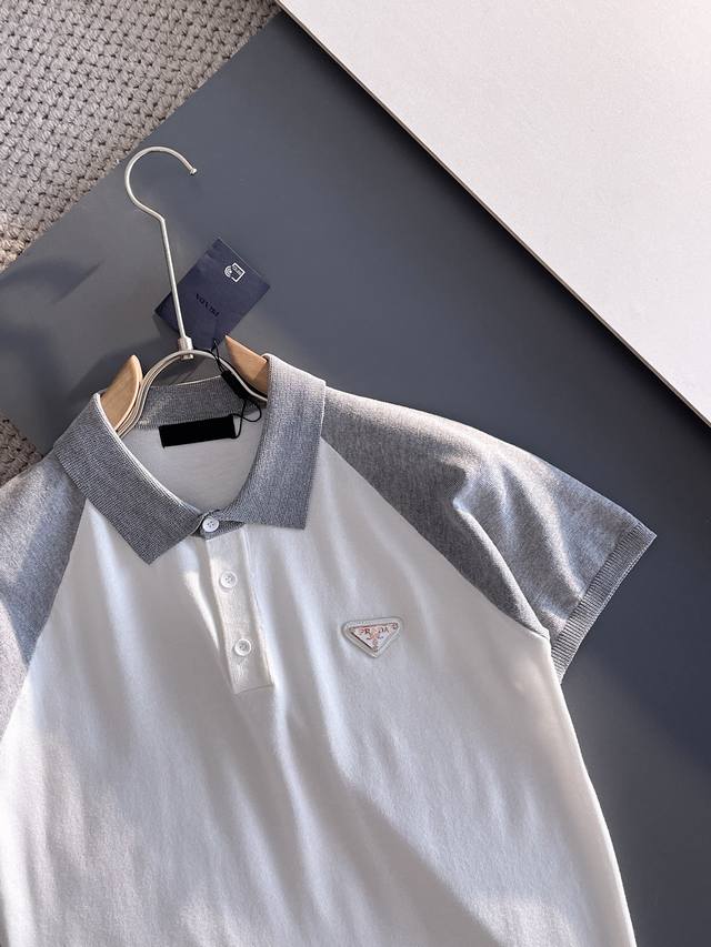 Prada 2025 new short-sleeved Polo, handsome and fashionable, top-positioned top-woven letter logo, simple and versatile style. The fabric knitting is not only crisp, maintaining the trendy silhouette, but also comfortable to wear, the yarn weaving is more delicate, size M-3Xl
