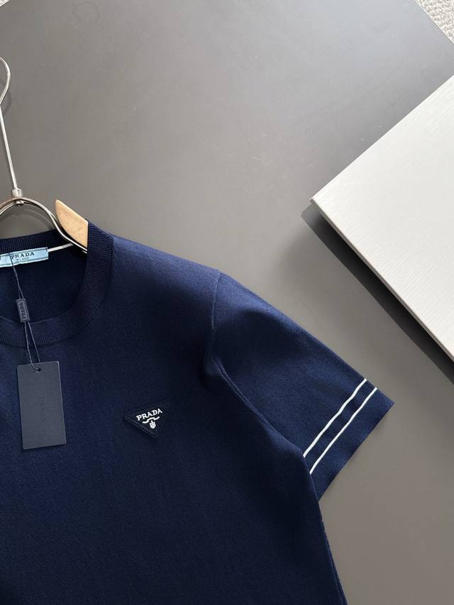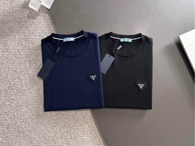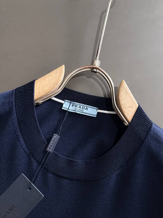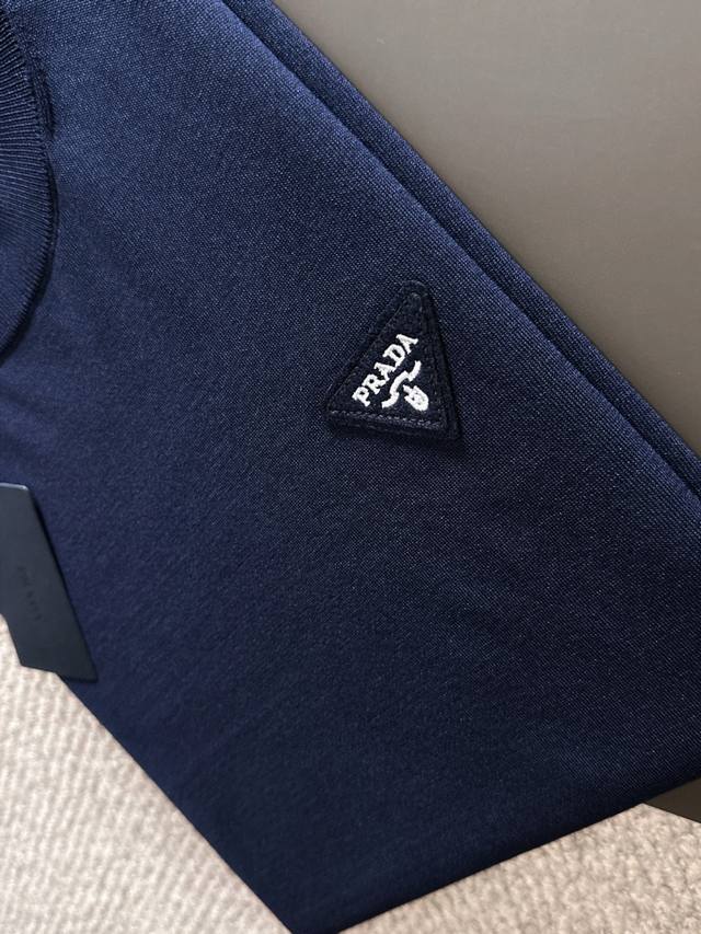 Prada Prada high-end Tencel Polo short-sleeved sweater solid color simple counte