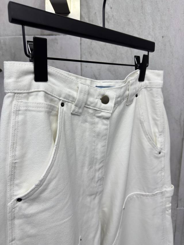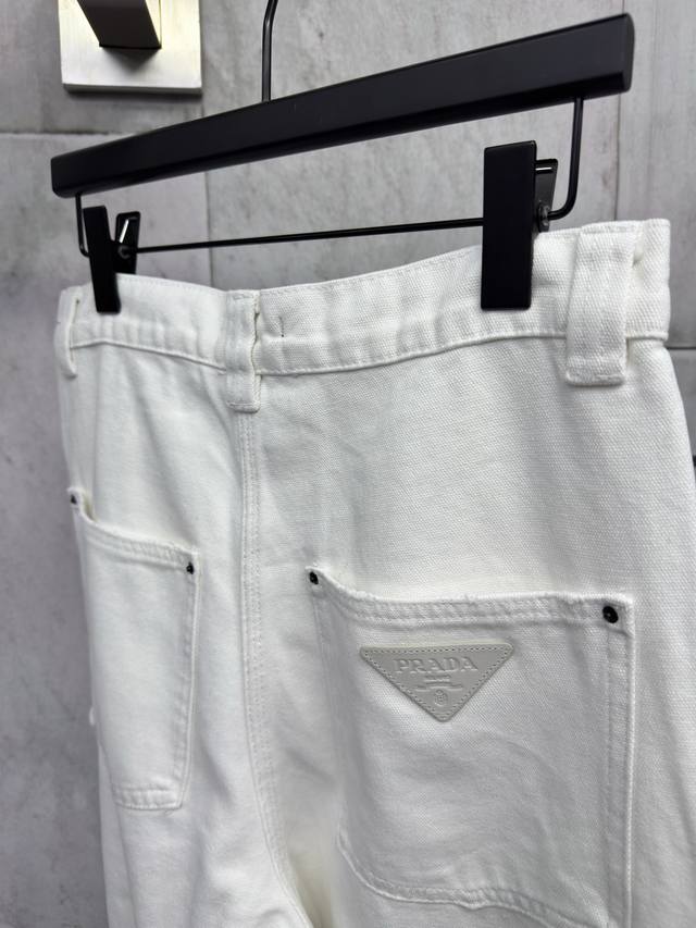 Prada triangle leather overalls process description: Customized large-grain washing and fading. Zhu Fan uses imported special aircraft infrared to locate the "triangle leather label", making the position more precise and firm. The cloth is heavily washed with a special solution to remove stains and slight fading. Then it is snow washed with a strong washing method to fade the color to make it more uniform. A new high-speed and stable CNC pattern machine is used for bone measurement. Through precise digital control and high-speed and stable operation mechanism, each bone measurement mark is ensured to present a perfect three-dimensional effect and exquisite appearance. The overall line is straight and delicate, the fabric is comfortable and soft, the color is consistent and there is no color difference. It can be matched with the same style to create a fashionable look, suitable for various occasions, customized accessories, three labels are complete, and the same style for men and women! Size: 38-40-42-44 Color: White