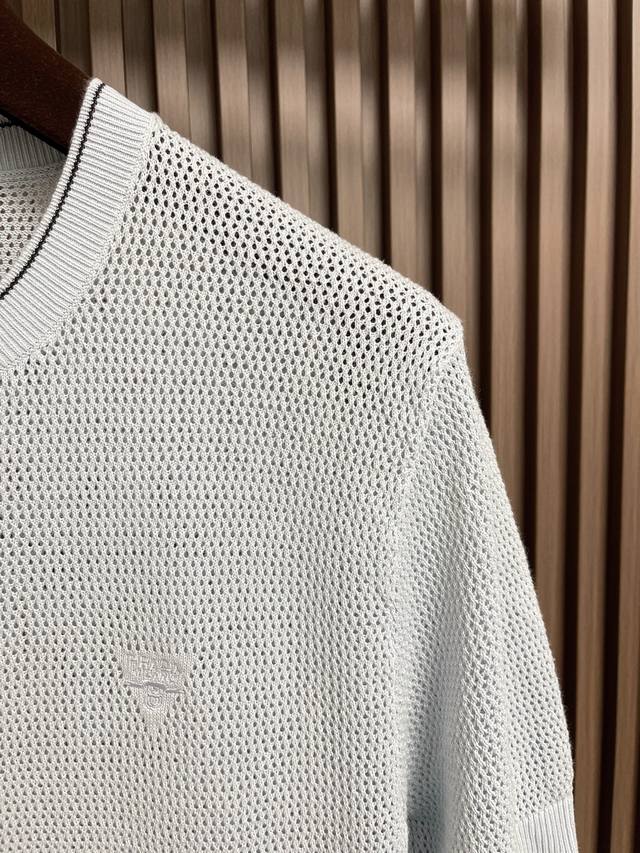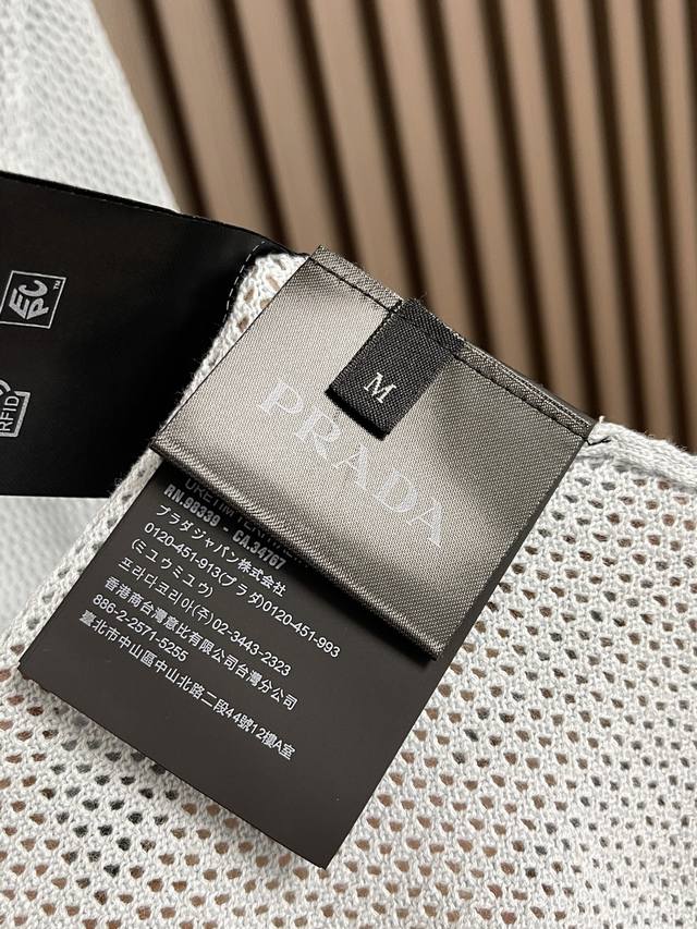 Prada's new 2025Ss triangle logo hollow mesh knit T-shirt continues the ultimate