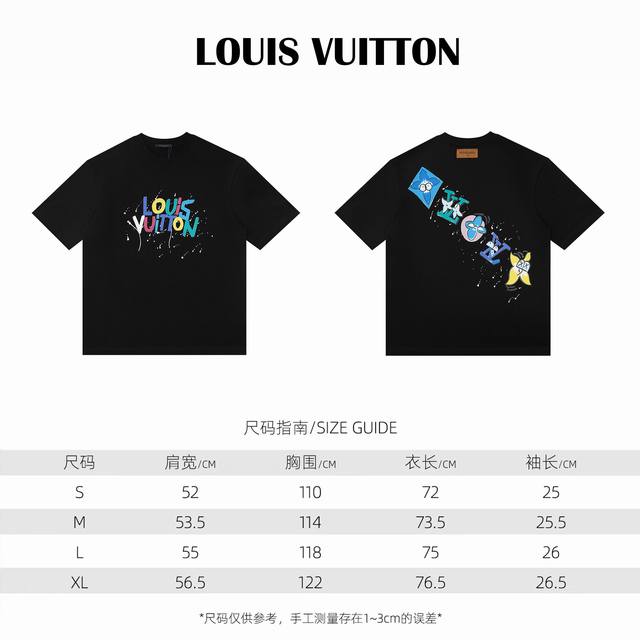 Price P: One piece minimum order. Loose order +10 Style: 2025 new Louis Vuitton short-sleeved T-shirt Material: Active colored diamond high version 300G double yarn combed cotton Size: S