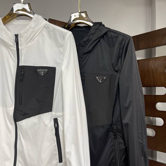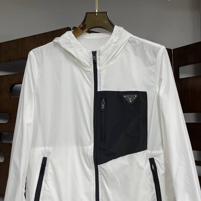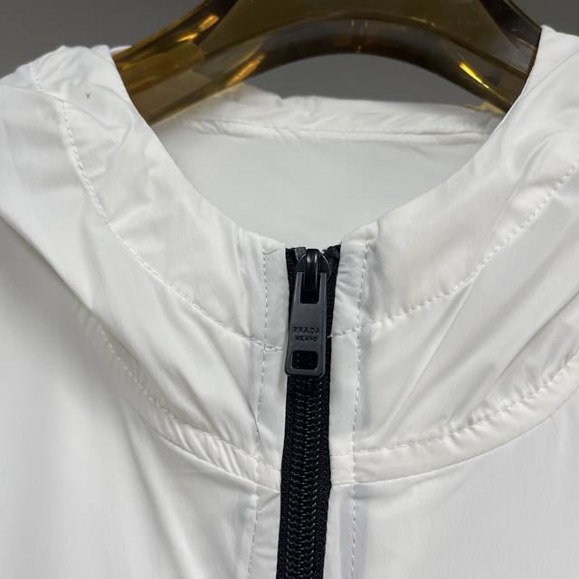 Qiu Prada 2025 Spring/Summer official website's latest thin hooded jacket, perfect for sun protection during May Day travel, perfect for air-conditioned rooms, and summer sun protection. Made of custom-supplied milk silk 2D polyester fabric, this jacket is soft, delicate, comfortable, and breathable. The brand logo embroidery highlights the brand's luxury. The custom zipper and original hardware are included, and the original label is washed. A must-have for trendy, high-end fashionistas. Sizes: M-3Xl Dx
