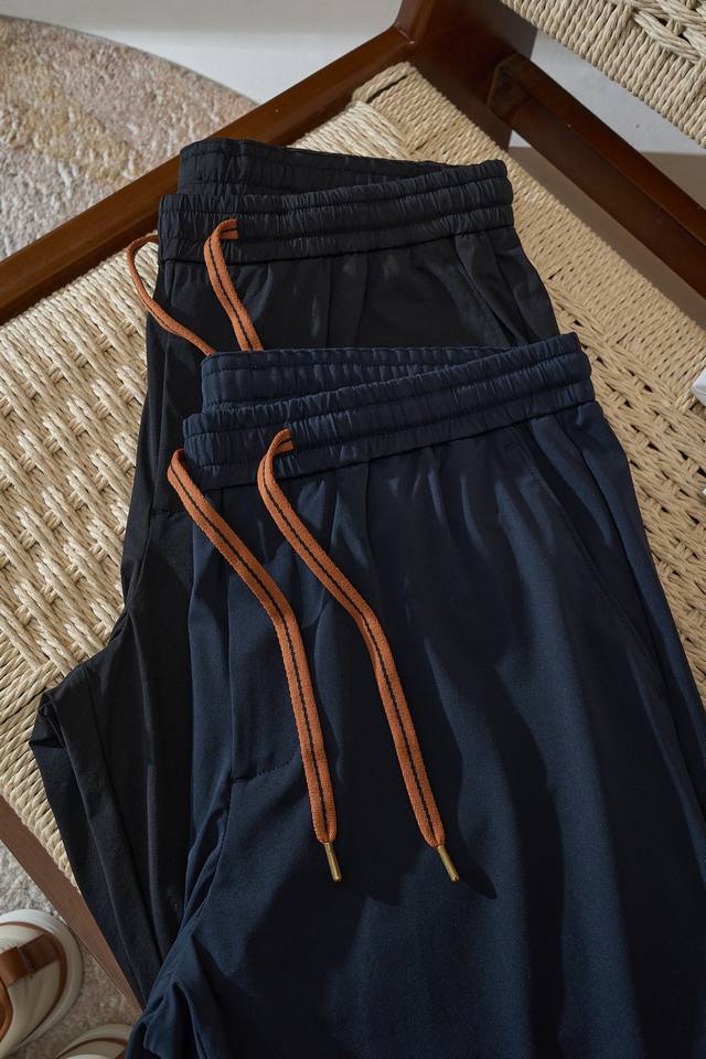 Relaxed and comfortable, casual drawstring pants unlock all-weather comfortable