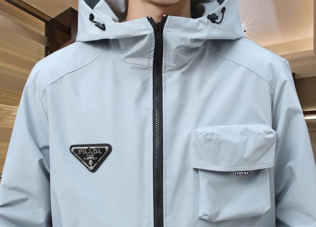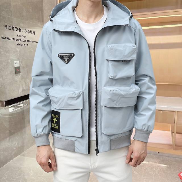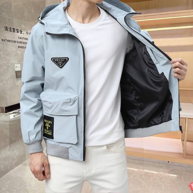 Same style as Prada official website, three labels complete, 2025Ss spring new men's jackets on sale in advance, original three labels complete, high-end version, counter customization, high breathability and comfort, impeccable details, brand element design concept, embodying high quality. Delicate and soft feel, casual cut, super upper body version Size: M~3Xl