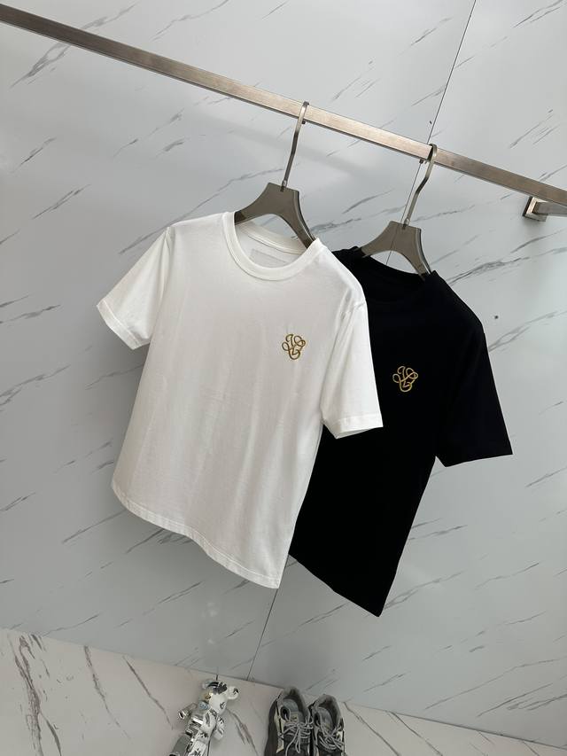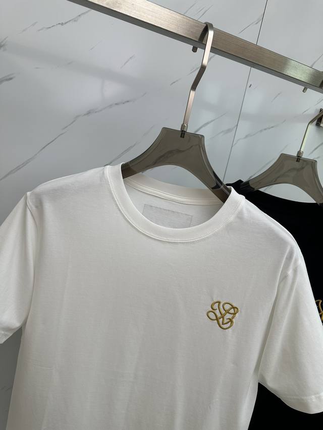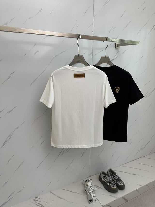 Special price 3 pieces..3 pieces minimum, can be mixed and matched. Special offer items are not refundable or exchangeable. Lv 25Ss spring and summer new cotton round neck short-sleeved T-shirt with heavy embroidery on the chest. High-quality pure cotton fabric custom standard version in black and white 2 colors for men and women. Sizes: SML Xl Xxl