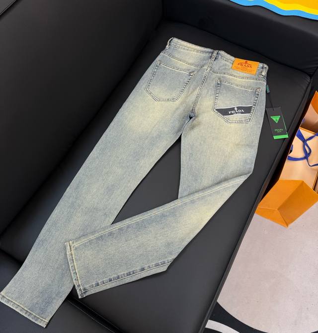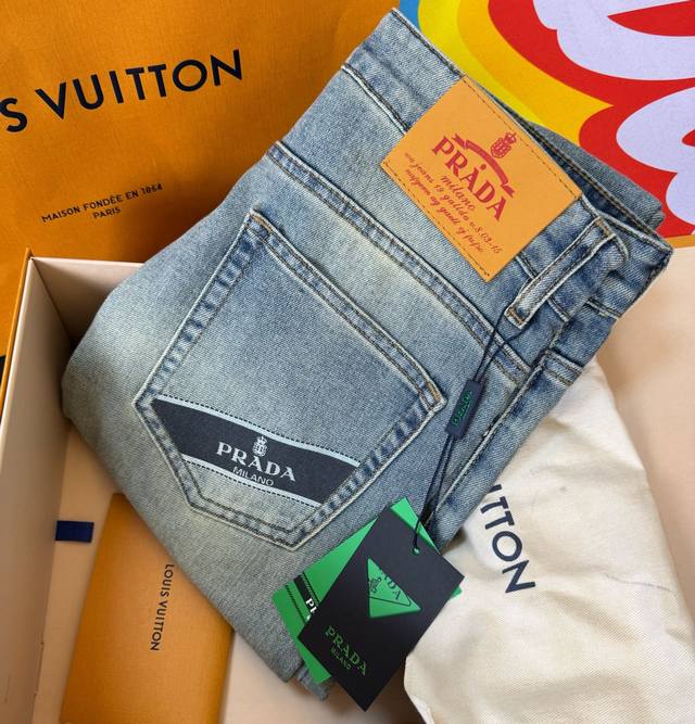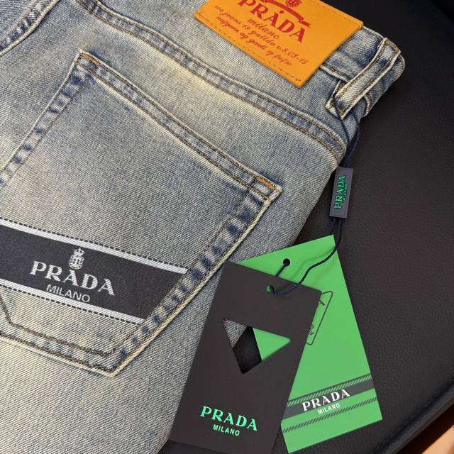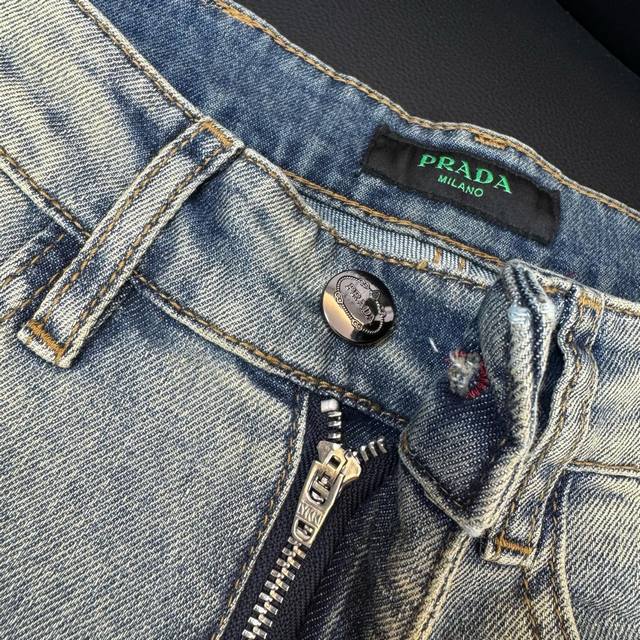 Prada Prada 25 Spring and Summer new printed letters washed fashionable casual straight-leg skinny jeans