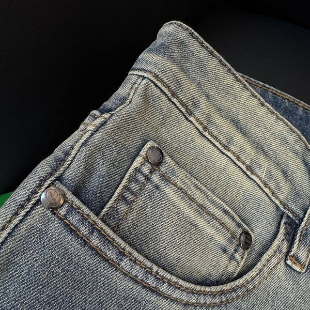 25 new jeans, made of high-quality denim fabric, the fabric contains 92% cotton plus 6.4% polyester, and 1.6% spandex. Such a high content of cotton and the integration of spandex fabric make the pants feel soft and delicate, comfortable and elastic, exquisite workmanship, highlighting the super high brand charm.