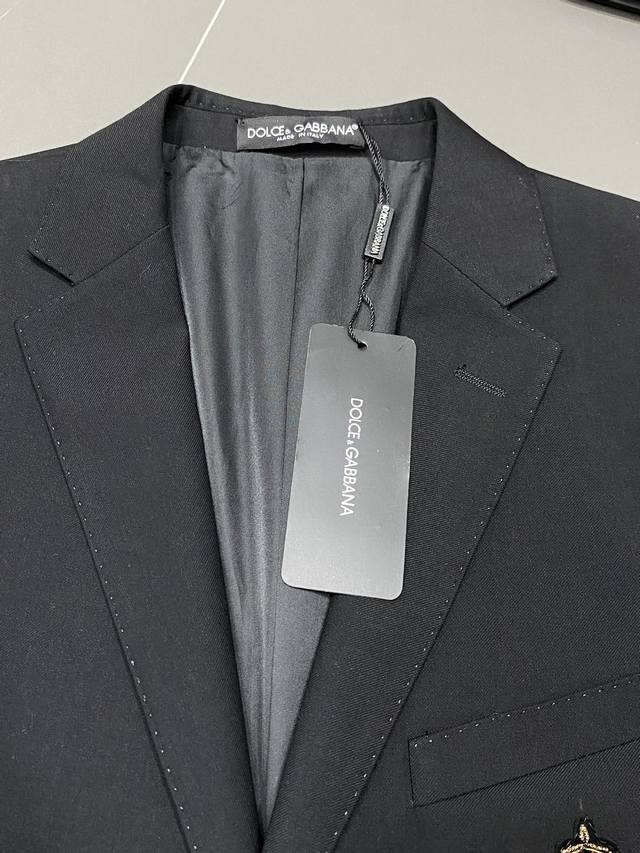 suit. Single-breasted jacket and trousers. Dolce & Gabbana's new spring/autumn suit. This simple, casual blazer is custom-made for a foreign trade company. Made exclusively from imported, authentic polyester fabric, it's breathable, soft, and warm, with a straight, drapey fit. The entire piece features neat, even stitching, and all hardware and accessories are custom-made. The premium, logo-enhanced accessories are a true testament to the high-end quality of the fabric. This fabric is custom-woven, and quality is simply not available from established manufacturers. This jacket is practical and practical, perfect for everyday wear. Sizes: Jacket 46-58, Pants 29-38