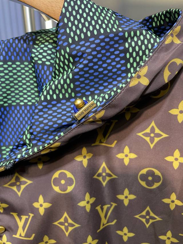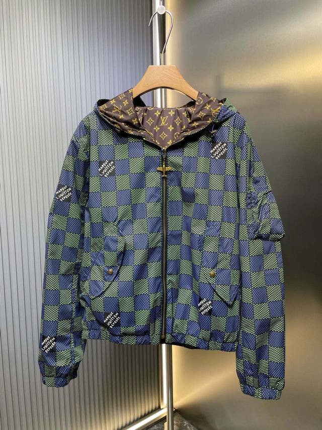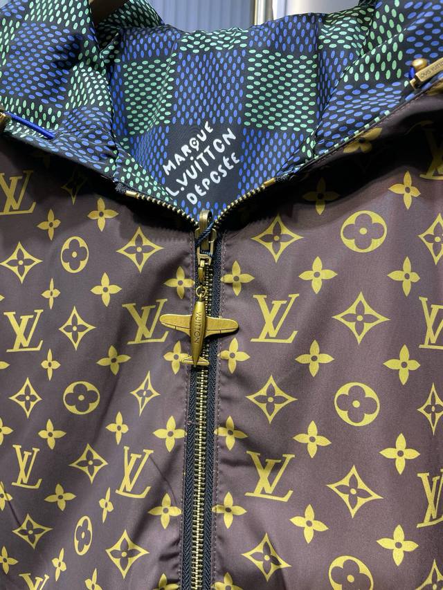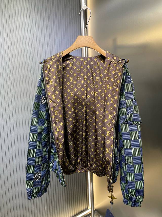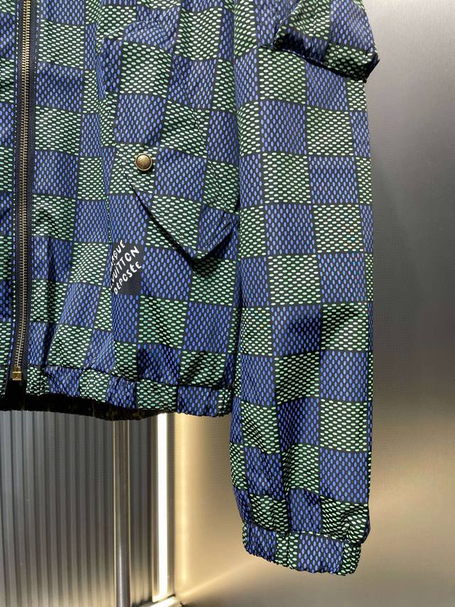 The new double-sided windbreaker jacket from the 2025 Spring/Summer fashion show interprets the Damier check from a modern perspective, and the full-width Monogram pattern appears when it is flipped over. The airplane-shaped metal zipper head is ingeniously engraved with brand elements, and the light texture is easy to store.