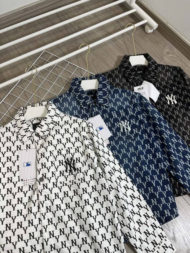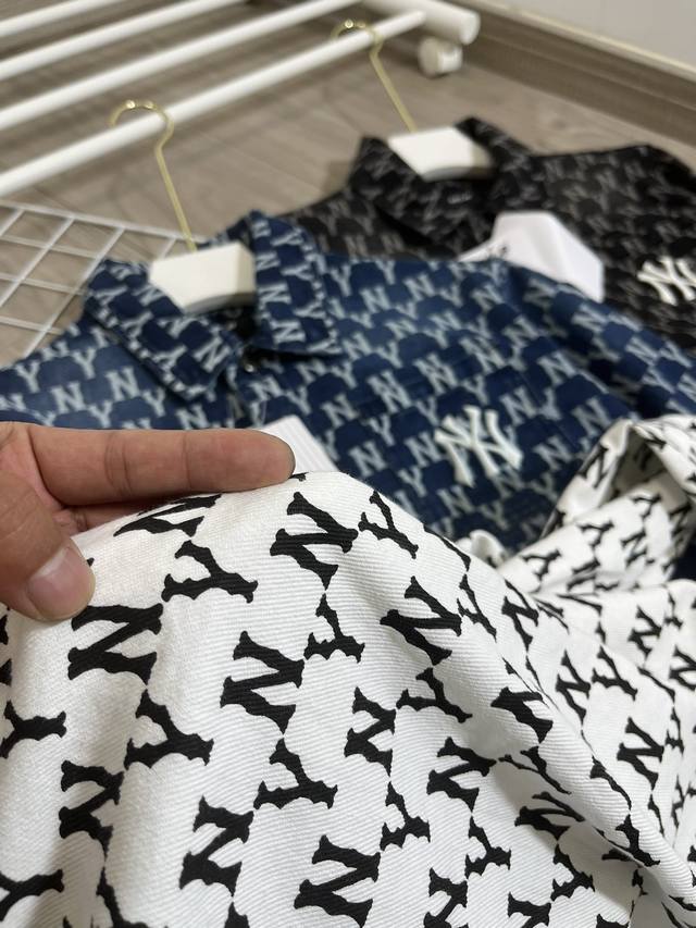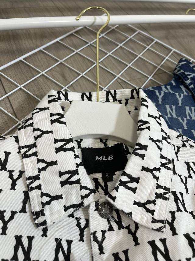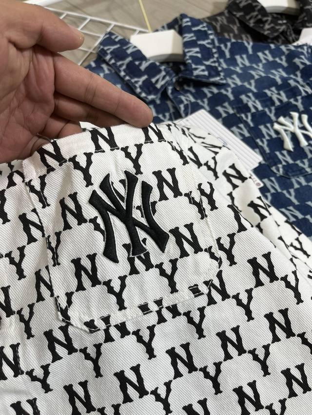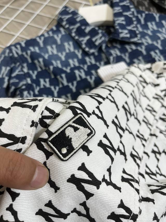 1706 style Mlb Ny full print washed blue embroidered denim jacket couple jacket