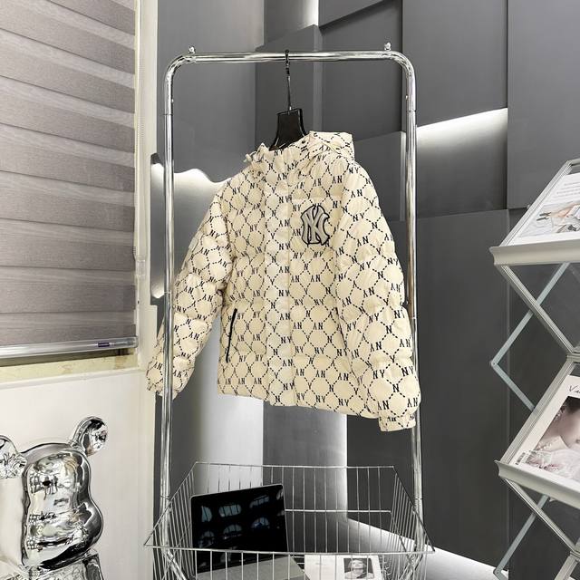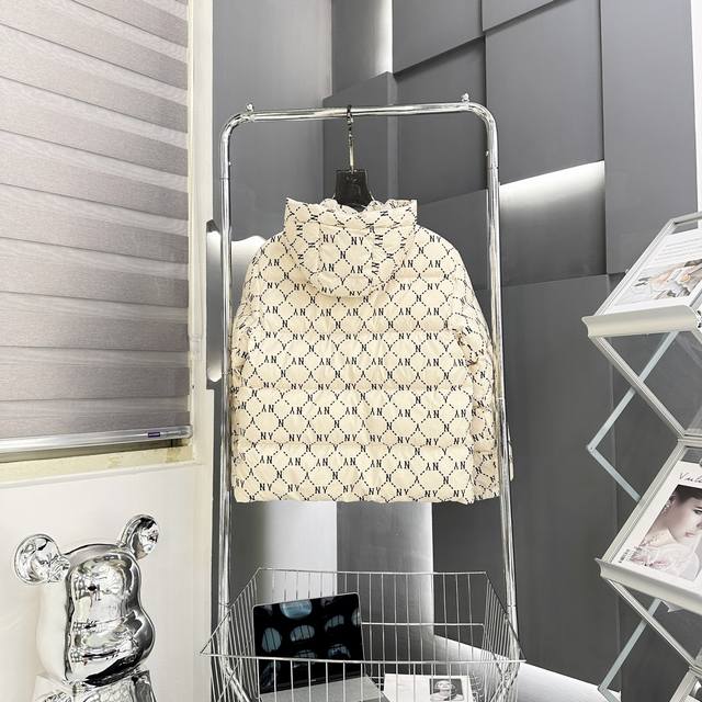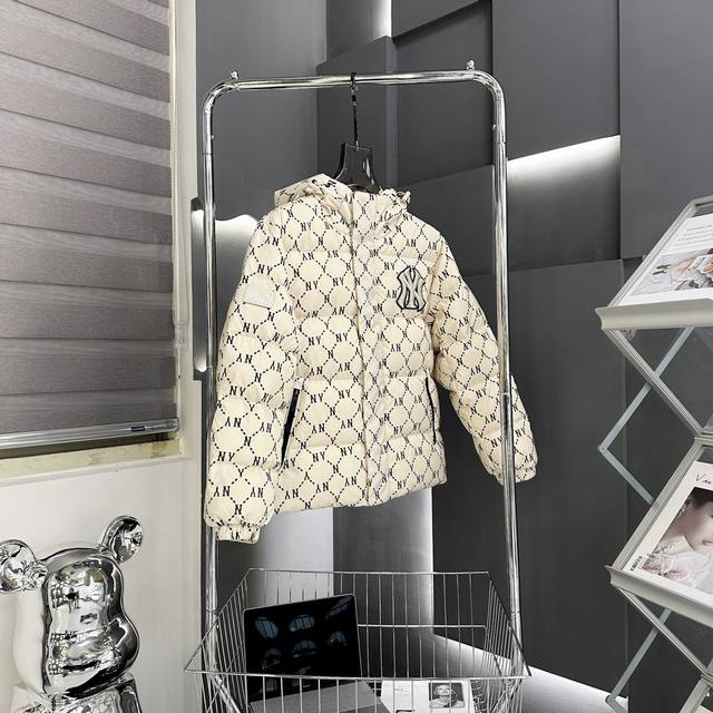 22 Winter Unisex Hooded Vintage Monogram Down Jacket with Full Monogram Print. Design Concept: