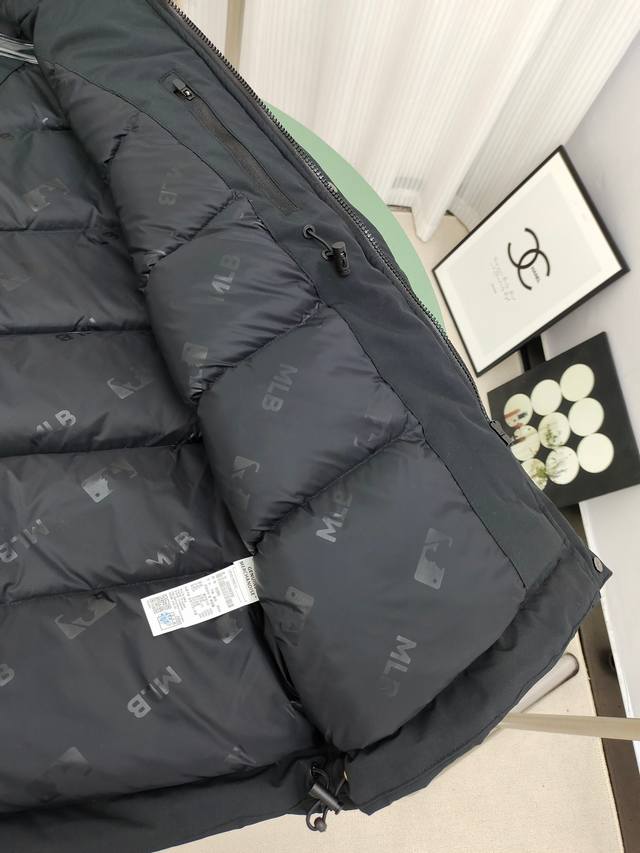 . The zippered pocket on the left arm is unique and ingenious. Custom-made waterproof nylon fabric provides increased durability and is also waterproof. Even if you encounter sudden rain or snow, you don't have to worry about getting the items in your bag wet. This big bag gives you a super safe feeling. Wearing this way means you can rest assured and do whatever you want. We choose internationally certified high-quality down, heavyweight and high-fluff down filling, and internationally qualified duck down, which is clean and environmentally friendly. The down is soft and delicate, with very few light feather stems. It is outstandingly warm. It also has an anti-drilling lining that tightly wraps the down to effectively prevent it from drilling and running. This model uses imported fabrics, and Mlb is the only choice for trendy brands. This design is both trendy and versatile for outdoor wear. Color: Black and White Size: S-Xl