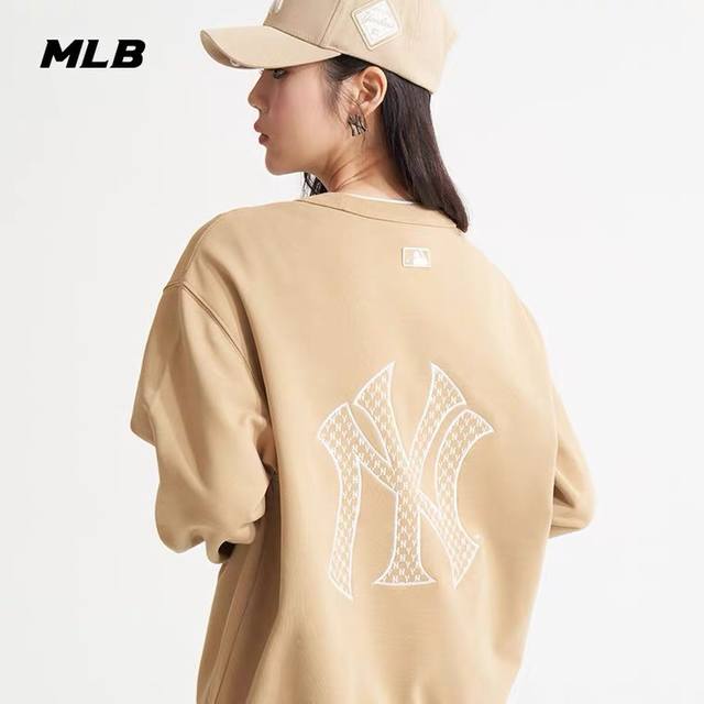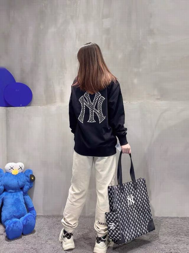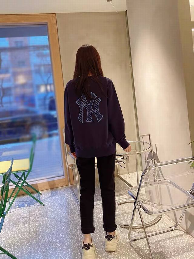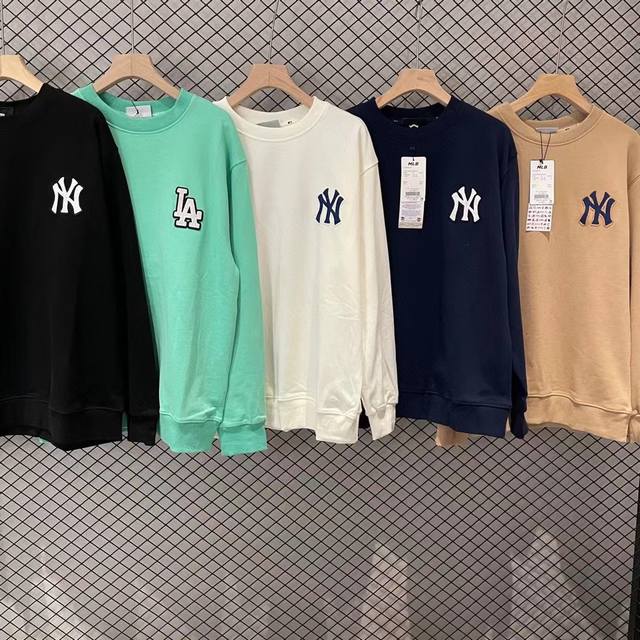 027# Korean Mlb Autumn/Winter New Unisex Crew Neck Sweatshirt with Embroidered Floral Print and Fur Trim Fabric: 380g Pure Cotton Terry Cotton Colors: Black, Cream, Khaki, Navy, Mint Green Sizes: S, M, L, XL, XL