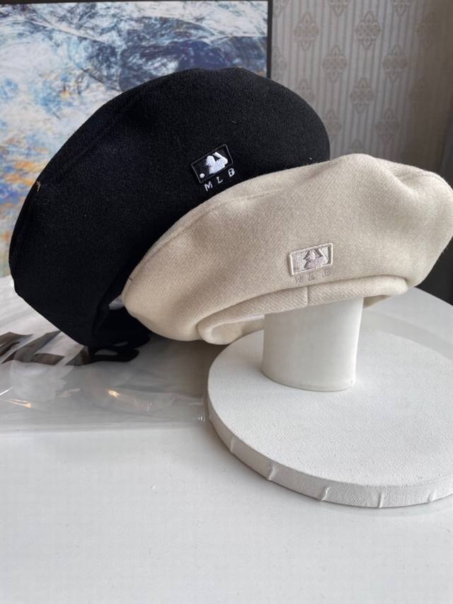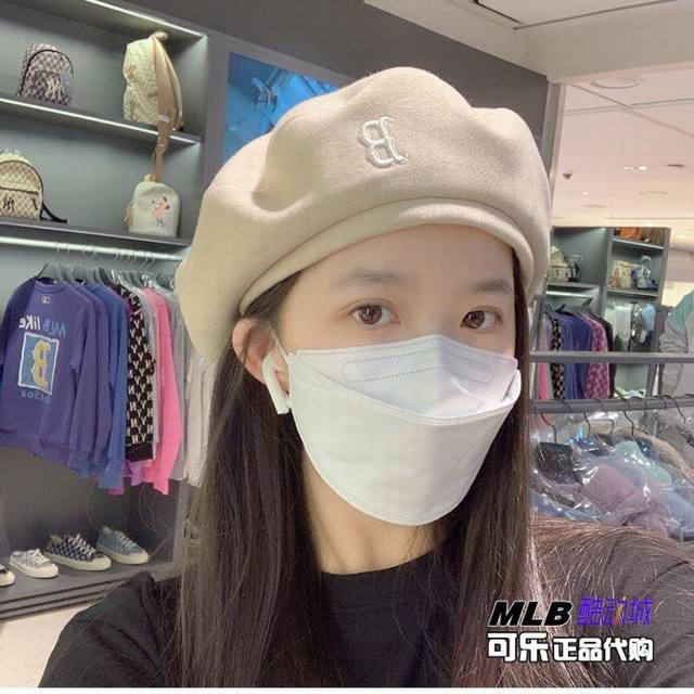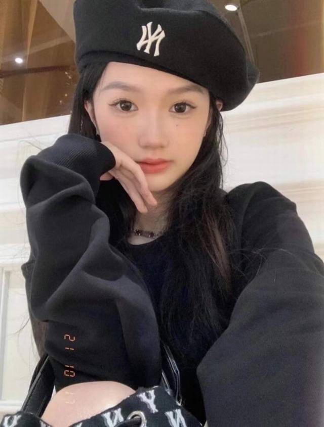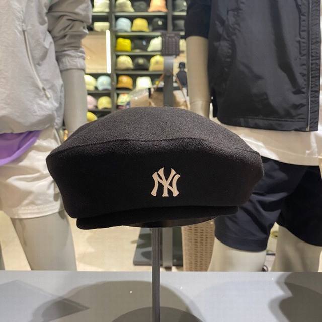 Authentic Korean Yankees beret, high-density embroidery, classic solid color, same style as Meng Meiqi, flat-top hat, unisex retro painter's hat, super stylish and versatile, complete with original packaging, tags, and washing instructions. Genuine quality, authentic version. Colors: Black, Beige.