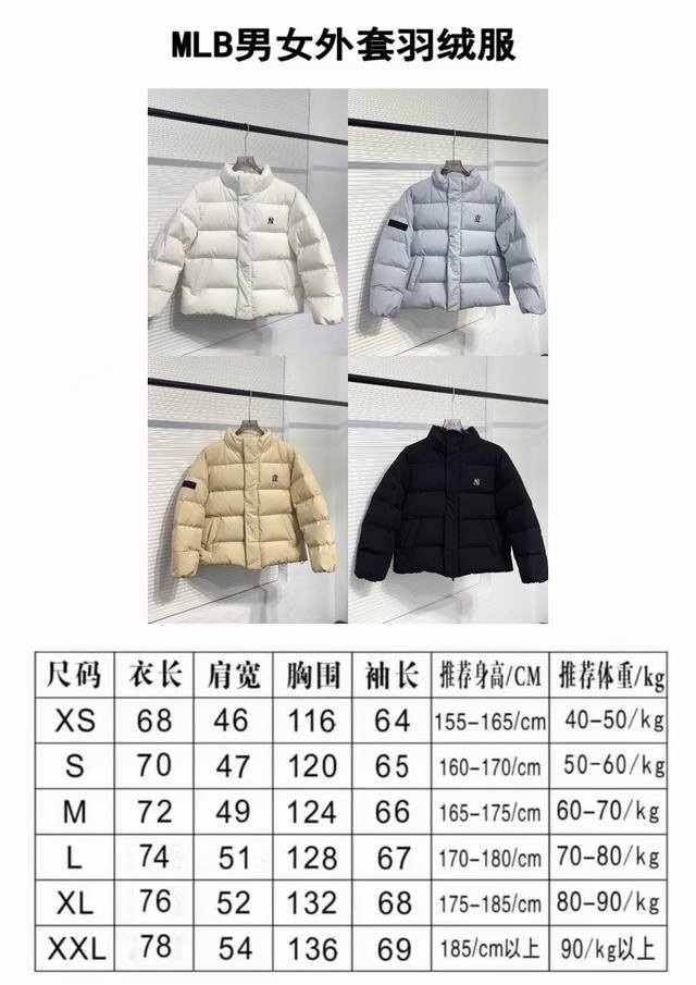 Authentic product, supports comparison, recommended by Xiaohongshu! Authentic Ddd, identical to the official store! New autumn/winter Mlb down jacket with stand-up collar and zipper, featuring a small embroidered logo on the left chest. Unisex, couple style, all three labels complete, in stock. Top-grade white duck down filling, a true winter wonder. A simple base layer is enough to withstand the cold. Suitable for both men and women. The logo is a short style, a timeless piece for winter. Mlb top-grade original fabric: Exclusive domestic original fabric with characteristics: waterproof, down-proof, colorfast, 24-count calendered woolen fabric! Ddd Lining: High-density D-count lining fabric completely eliminates down leakage and other issues. Ddd Accessories: Original factory zipper chest chain *1, side pockets *2, withstands 100,000 pulls and abrasions! This year's highest version on the market, all details are exactly the same, fabric and hardware are all original molds, and the down filling is top-notch, all national standard 90% down, unlike the duck silk versions on the market. 715+ fill power, double-layered lining, absolutely no fleece escaping. Quality guaranteed! Colors: Black, Khaki, Gray, White. Sizes: XS