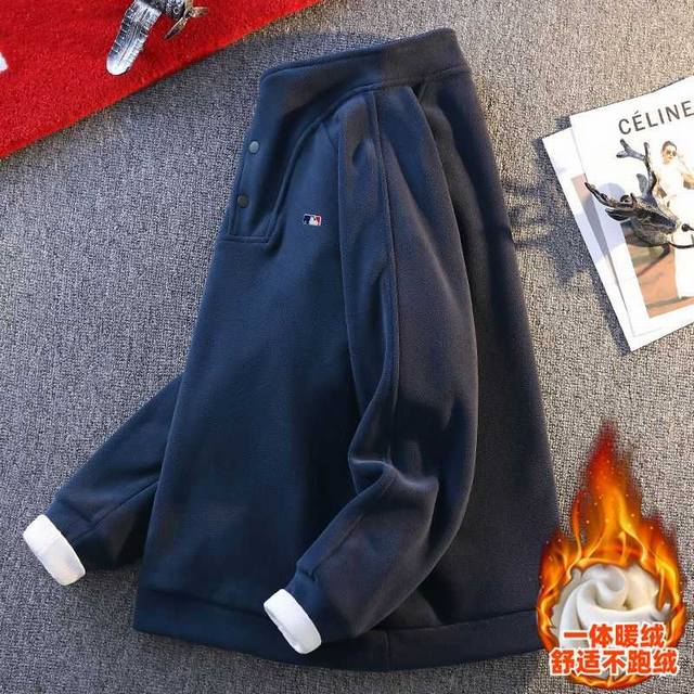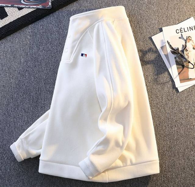 Fleece-lined and Thickened Mlb Major League Baseball Autumn/Winter Couple Style Fleece-lined and Thickened Half-breasted Double-sided Orylon Stand Collar Sweatshirt. Made of double-sided orylon fabric, slightly stretchy, soft, comfortable, and breathable. An Instagram-worthy retro stand collar pullover hoodie; the half-breasted stand collar design adds a sense of layering and is a must-have for creating a stylish look. The half-breasted design is very classic. Simple yet sophisticated, incredibly versatile. Colors: Off-white, Black, Navy. Sizes: M, 4XL.