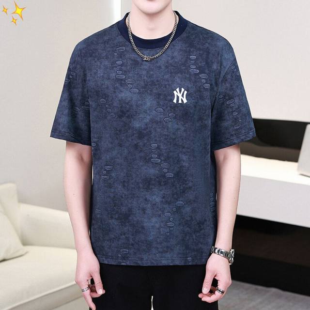 Mlb Yankees 25Ss new product! Summer trendy Chinese style printed round neck T-shirt