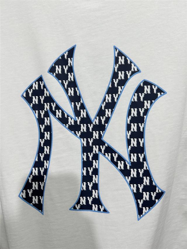 High quality! Mlb cabinet new back printed short-sleeved T-shirt with monogram! Three complete labels, triple hanging card, original packaging! Shoulder tape ensures comfort! High-end quality 2025Mlb Ny monogram big label couple round neck short-sleeved high-end quality counter 1:1 simultaneous sale, up to 200 pounds