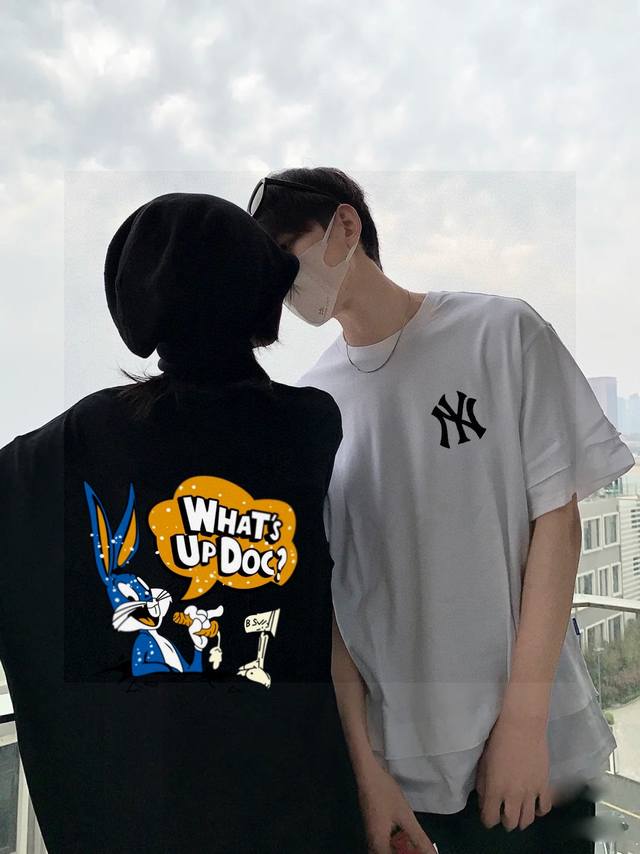 Mlb counter synchronized Bugs Bunny co-branded printed couple short-sleeved
