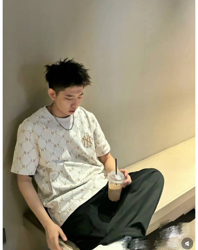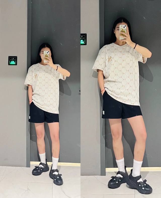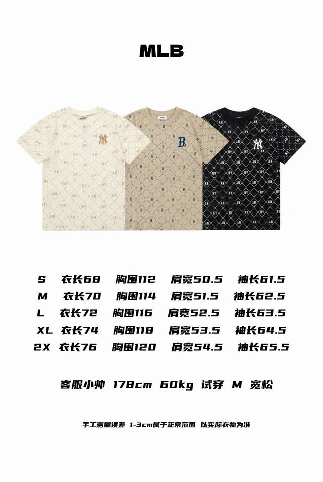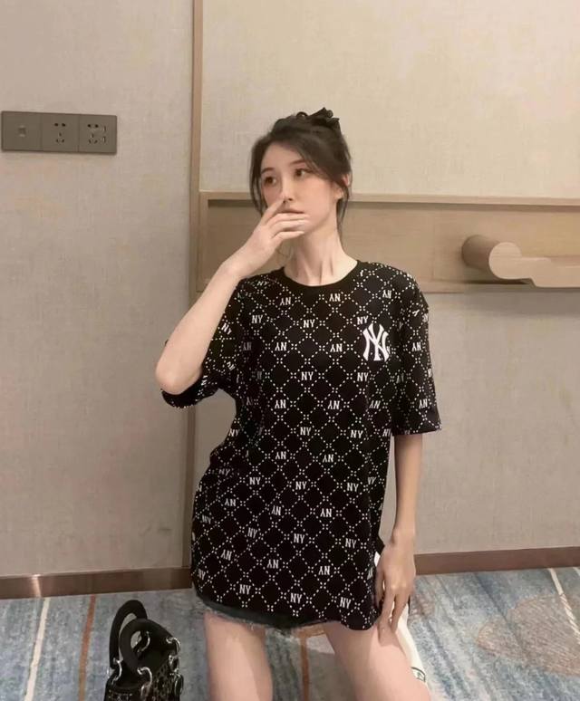 Mlb New York Yankees 25Ss counter model full-print logo chest embroidery couple round neck short-sleeved T-shirt - original anti-counterfeiting tag version