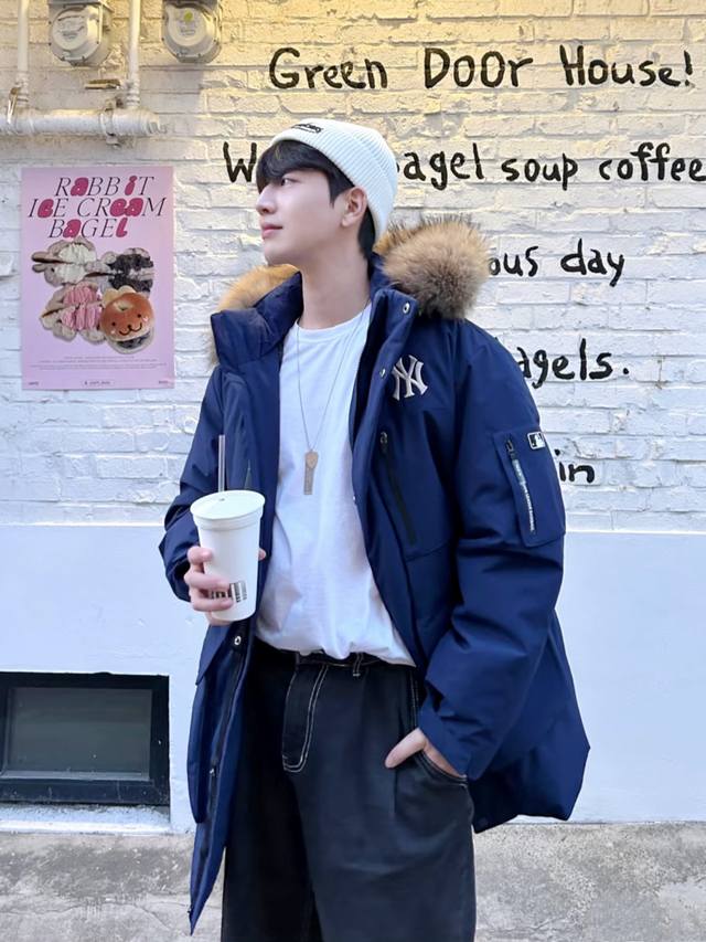 Mlb Official Men's and Women's Zhang Linghe Style Goose Down Collar Thickened Workwear Down Jacket Djb13