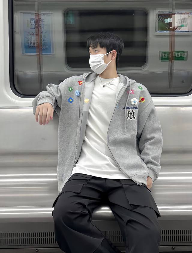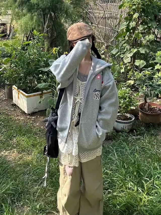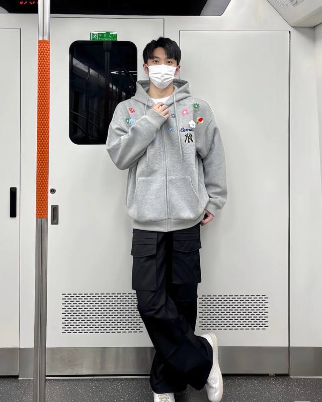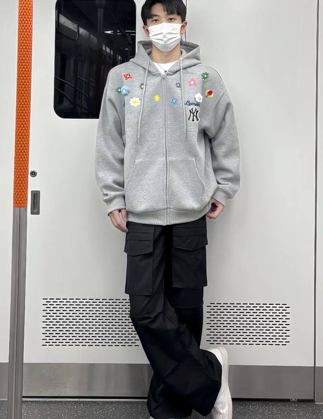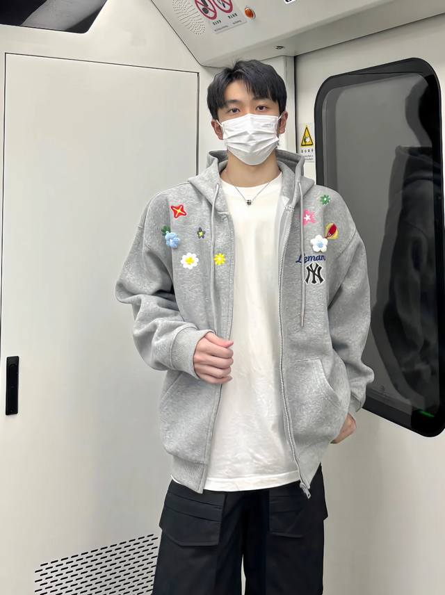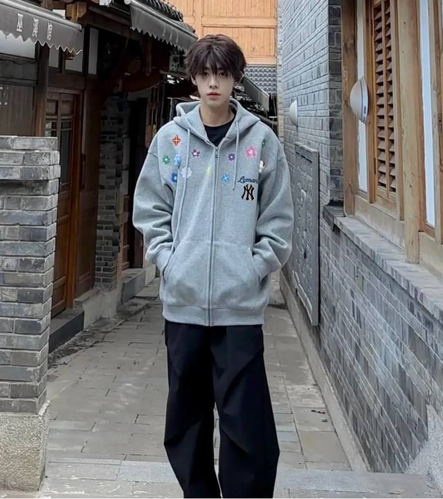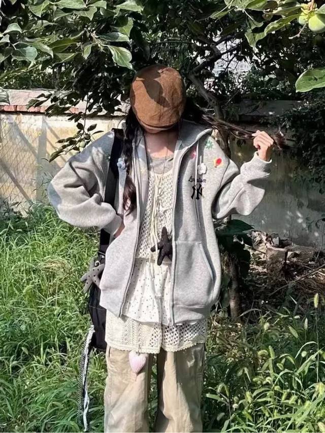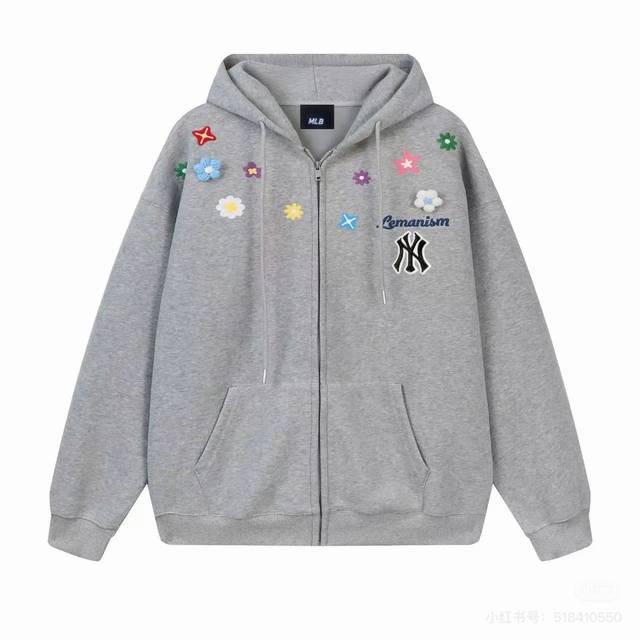 Mlb Yankees' new 320G heavyweight cartoon cardigan sweatshirt for men and women,
