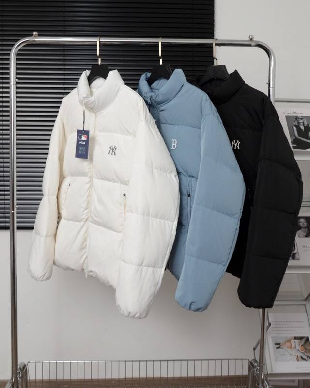 Mlb Yankees Ny Basic Silicone Logo Stand Collar Short Couple Down Jacket, National Standard 90% Down Filling,