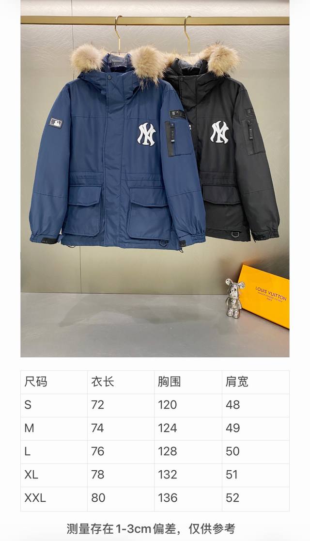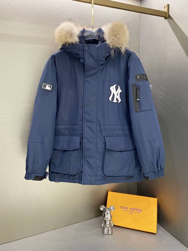 Mlb Yankees Winter Unisex Couple Casual New Style Down Jacket with Large Fur Collar DDD Double-layer downproof inner lining design, super windproof performance, extremely warm for winter wear. Filled with national standard 90% white duck down, with an average fill weight of about 280 grams, high loft, real raccoon fur collar, super warm. DDD Original custom zipper with logo zipper pull, classic embroidered small logo on the chest. Labels, hangtags, wash and accessories are all exactly the same as the original. Ddd Sizes: SML XL XXL Ddd Colors: Navy Blue Black DDD Ddd