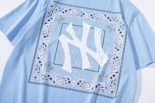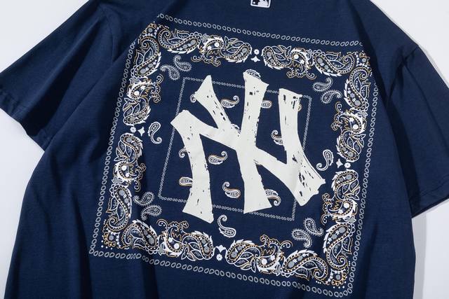 Mlb Summer New Paisley Embroidered Pure Cotton Casual Short-Sleeve T-Shirt