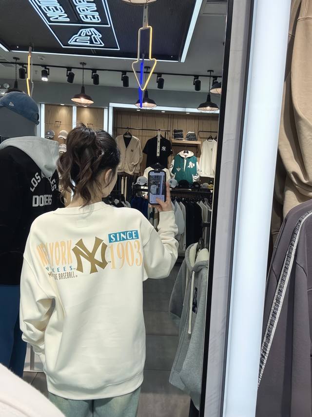 New Control 95Mlb Yankees' new classic monogram print on the back, plush silver fox velvet crewneck sweatshirt, updated simultaneously with the counter. Mlb is simply amazing! This autumn and winter must-have Mlb monogram sweatshirt is truly a must-have. The classic, simple lettering looks three-dimensional and beautiful.