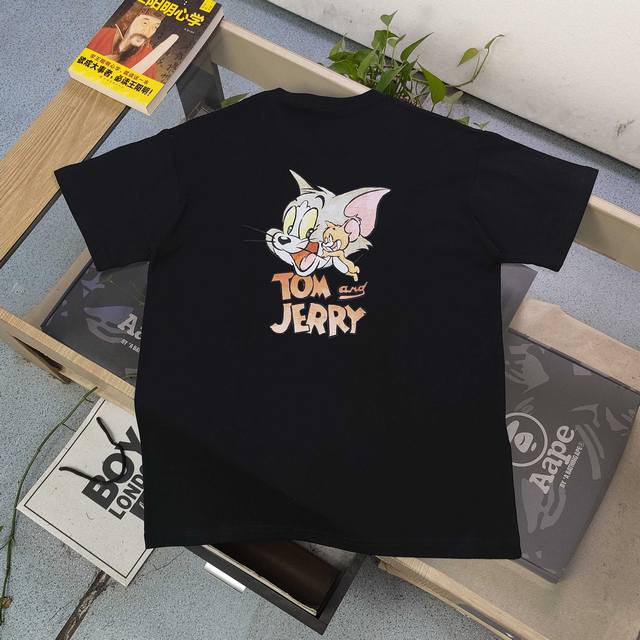 2025 new Mlb Yankees Ny joint Tom and Jerry series letter pattern Logo printed casual couple short-sleeved T-shirt, light luxury and high-end, upper body effect, absolutely unique, made of 250 grams of pure cotton fabric, a full set of customized accessories, printing using glue printing, no gender distinction, men and women the same style, a must-have in the wardrobe!